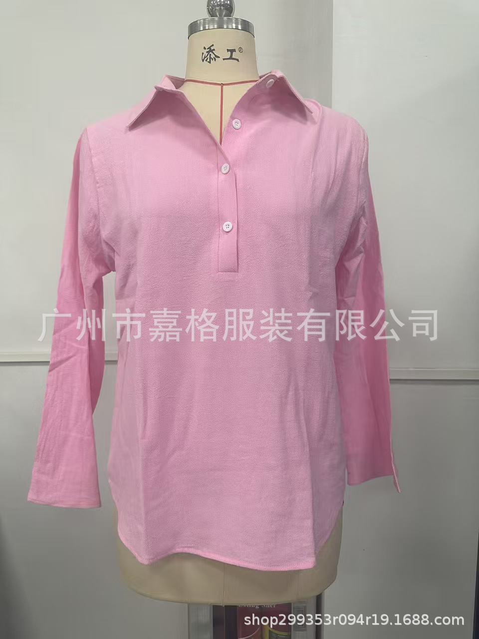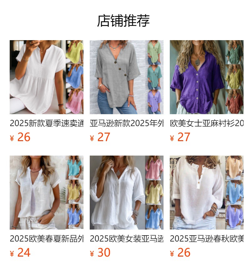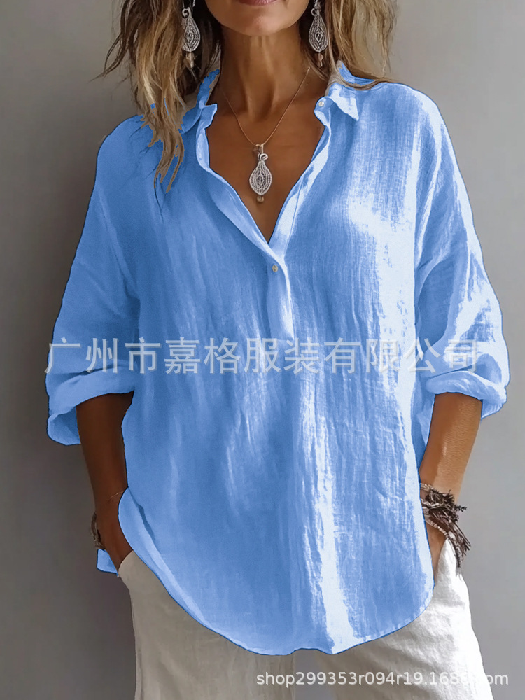 봄과 여름 2025 유럽과 미국의 단색 캐주얼 느슨한 긴 소매 리넨 V-넥 셔츠 아마존 셔츠스토어 가기