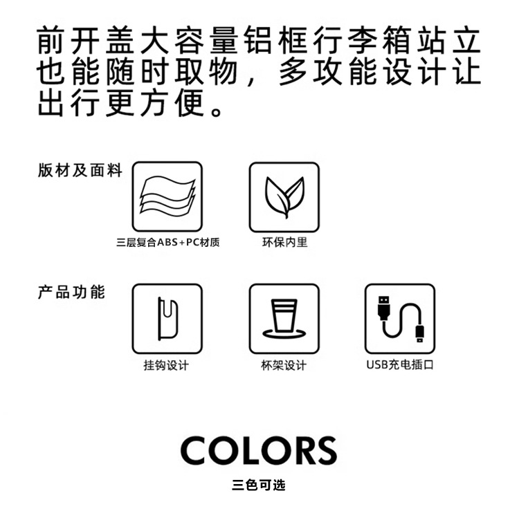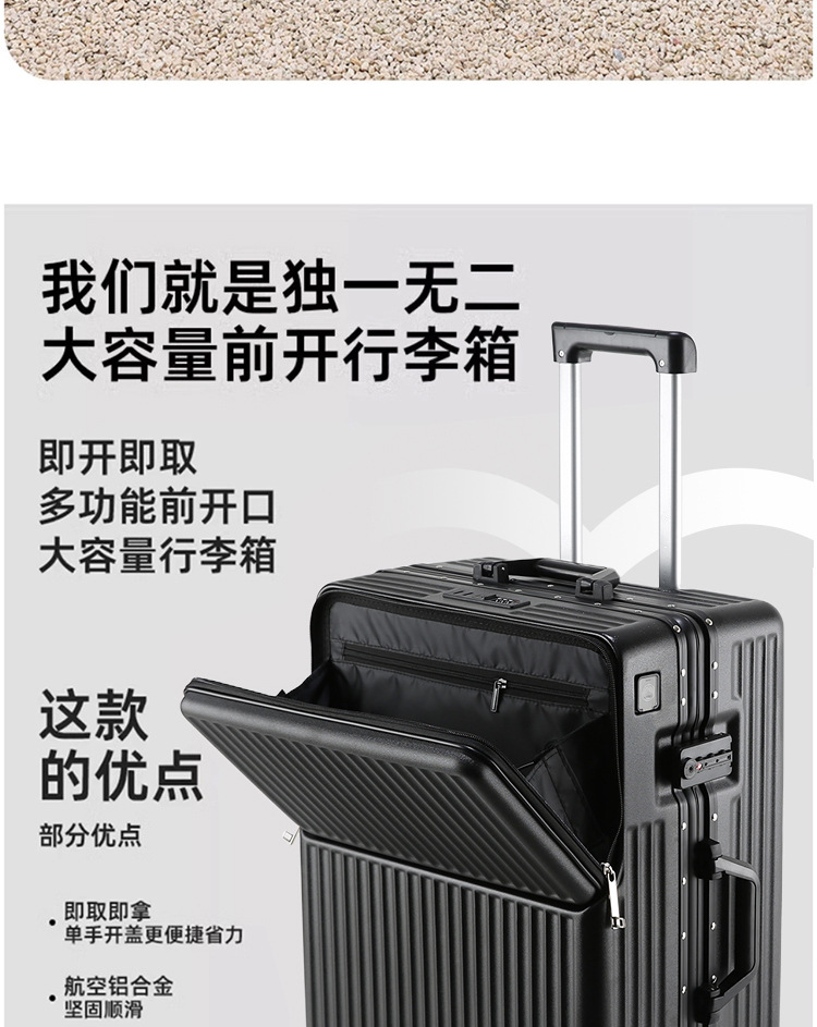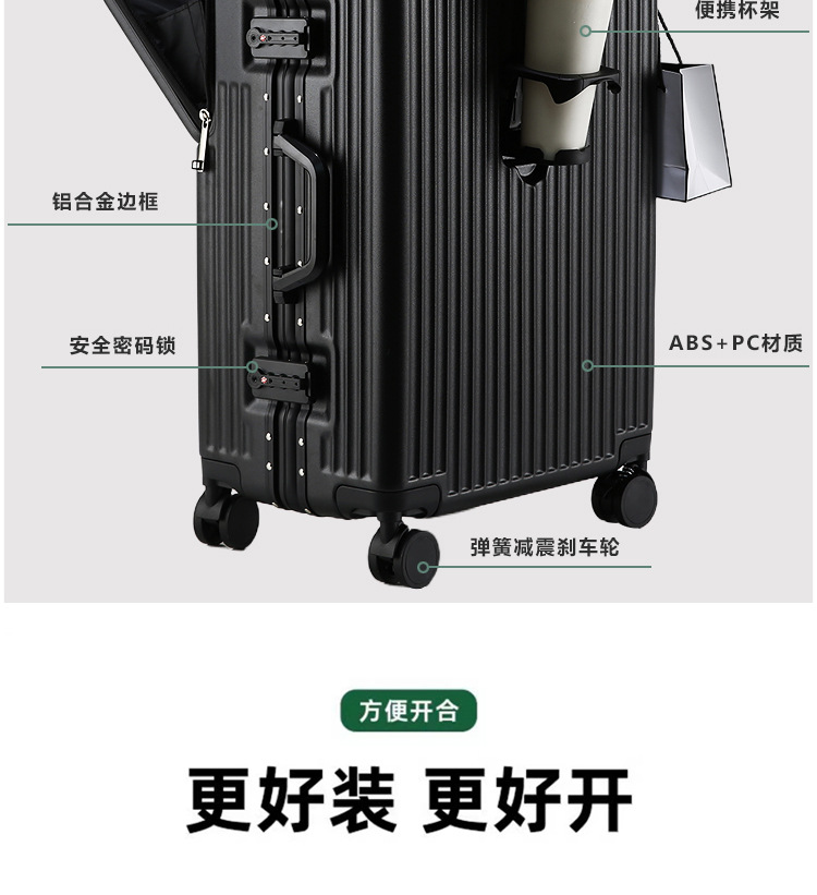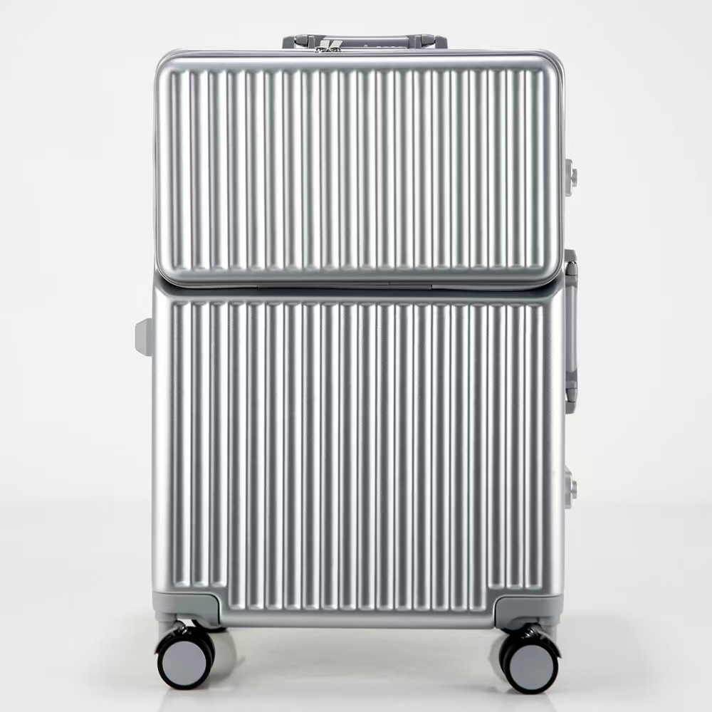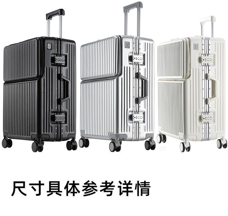 공장 도매 수하물 여성 여행 가방 트롤리 케이스 남성 유니버설 휠 암호 상자 전면 개방 알루미늄 프레임 탑승 상자스토어 가기