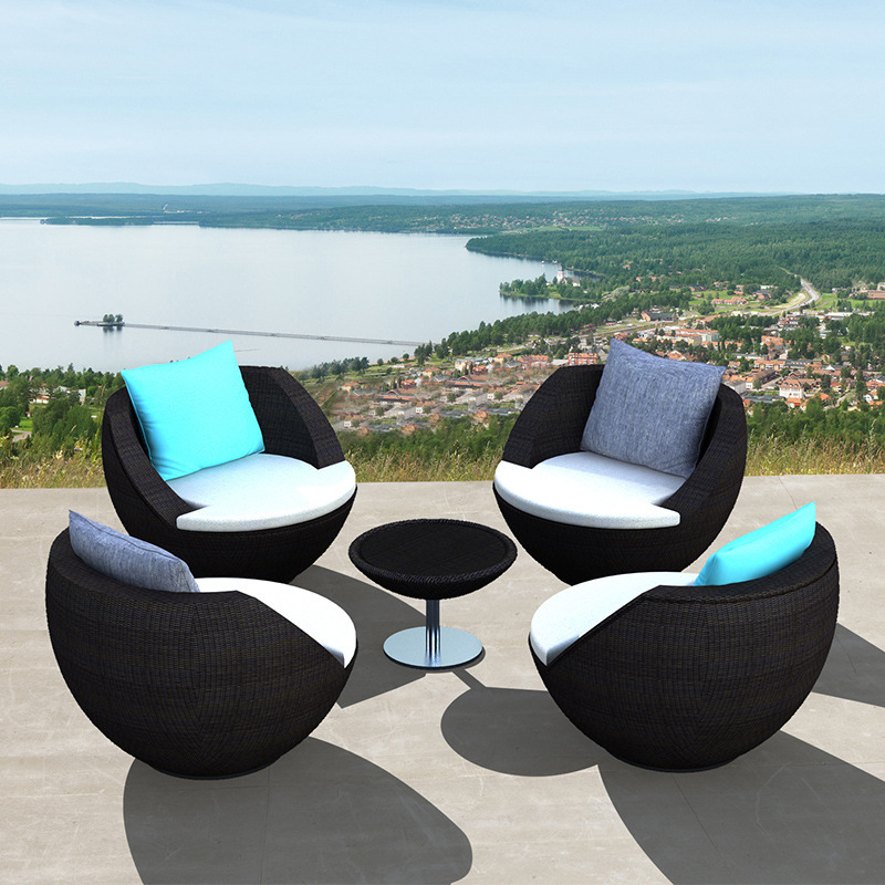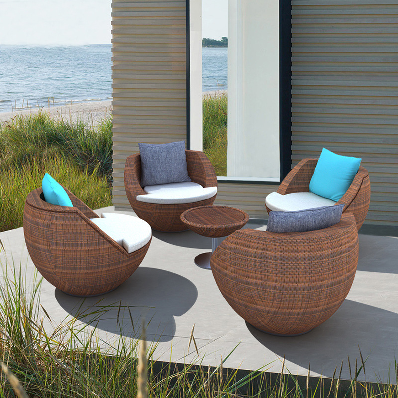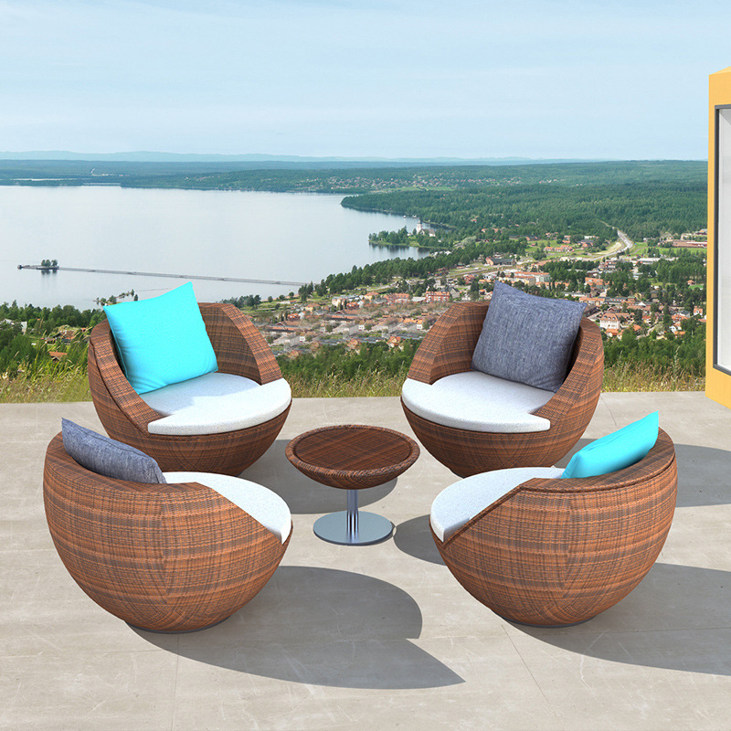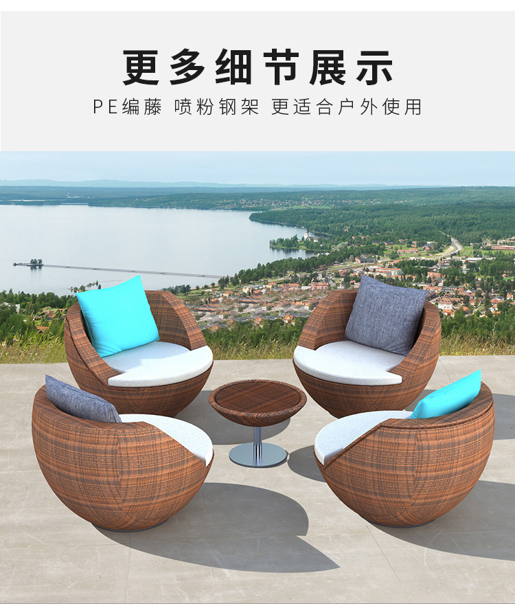 북유럽 창조적 인 레저 등나무 소파 테이블과 의자 커피 테이블 5 피스 세트 코트야드 테라스 발코니 거실 야외 등나무 의자