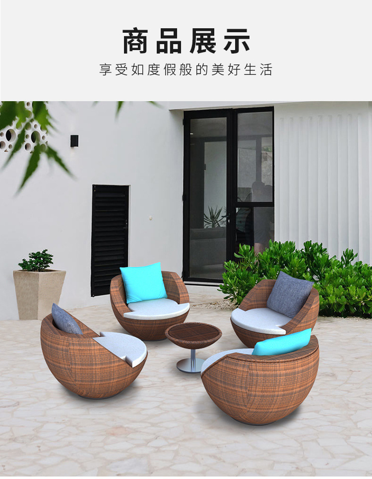 북유럽 창조적 인 레저 등나무 소파 테이블과 의자 커피 테이블 5 피스 세트 코트야드 테라스 발코니 거실 야외 등나무 의자스토어 가기