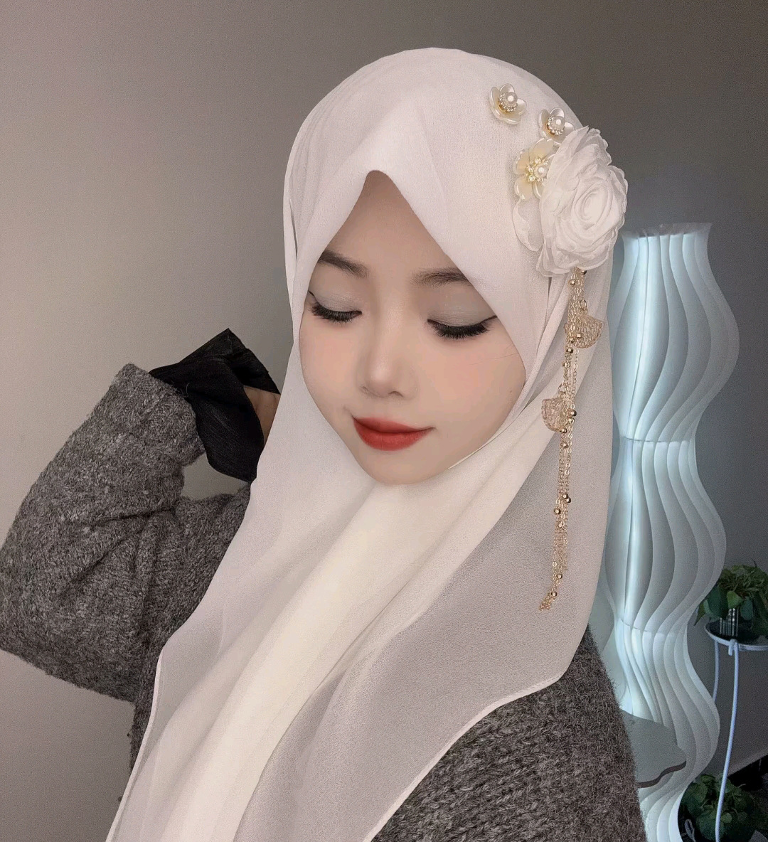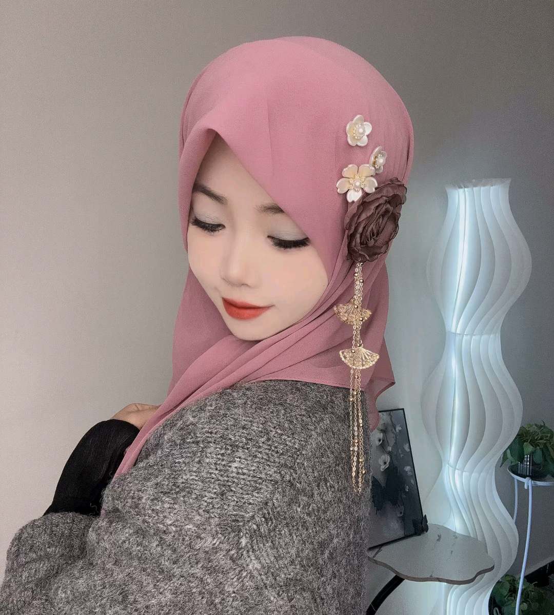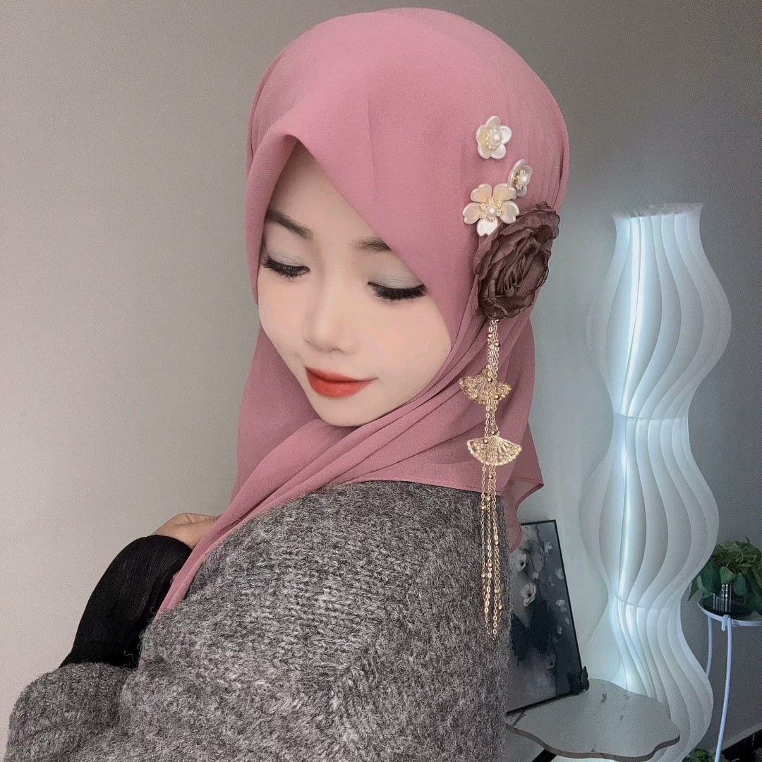 빠른 핸드 그물 레드 드라이 로즈 단색 쉬폰 스퀘어 스카프 꽃 후이 거즈 스카프 여성 스카프 머리카락 세대