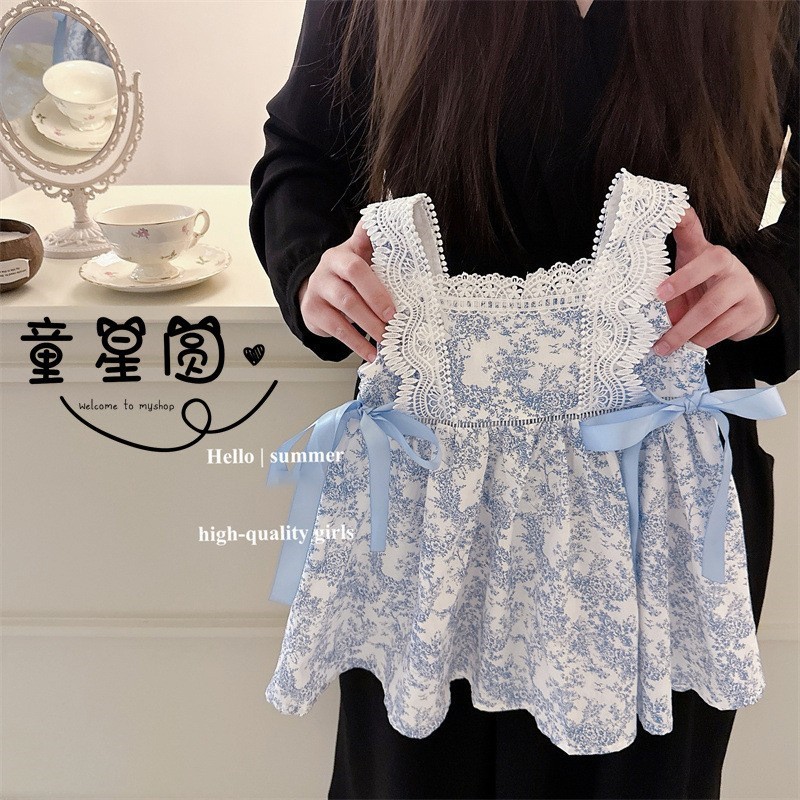 Tong Xingyuan 어린이 중국 스타일 청삼 Vesel 원피스 2025 여름 새로운 중국 스타일 한후 여자를위한 원피스 자수스토어 가기