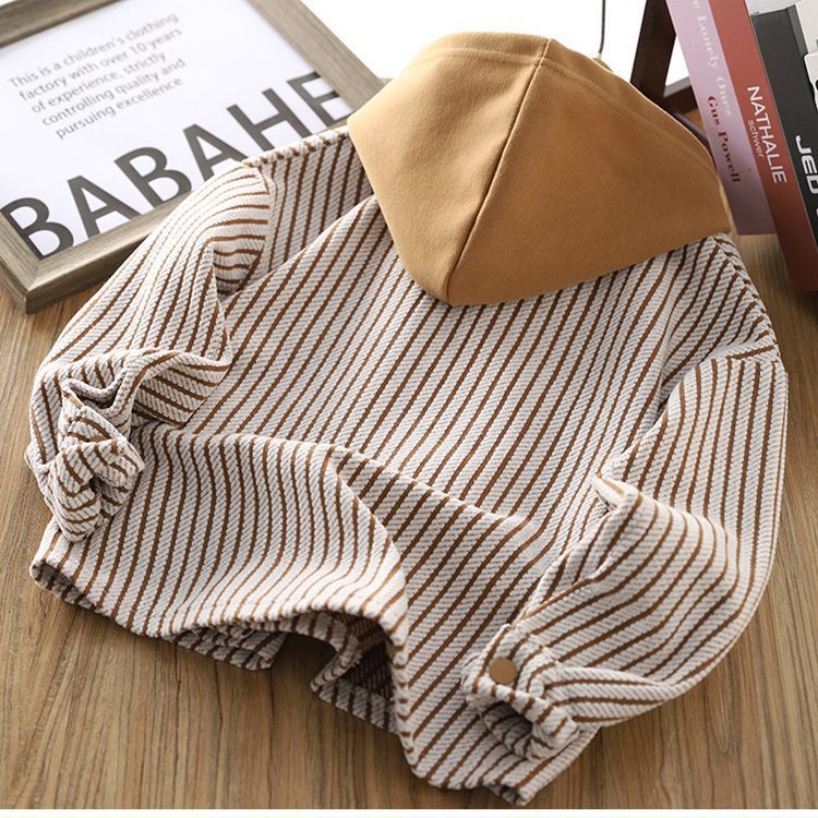 팬더 Yuanyuan 소년 가을 코트 큰 어린이 줄무늬 후드 탑 소년 가을 긴 소매 셔츠 캐주얼