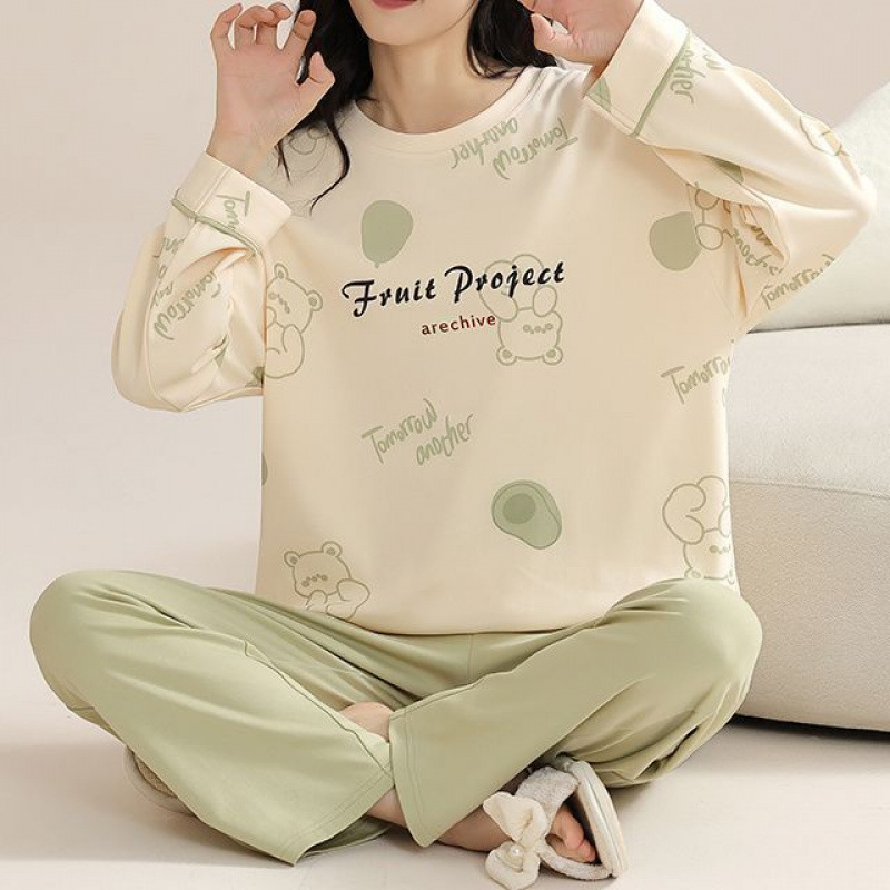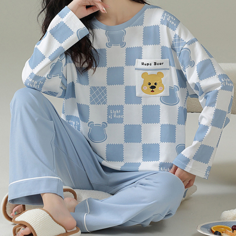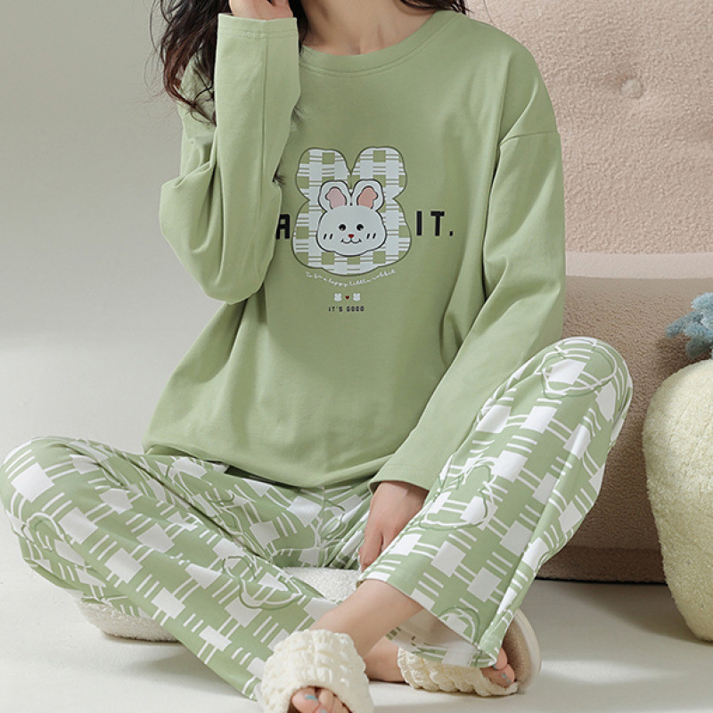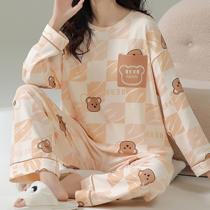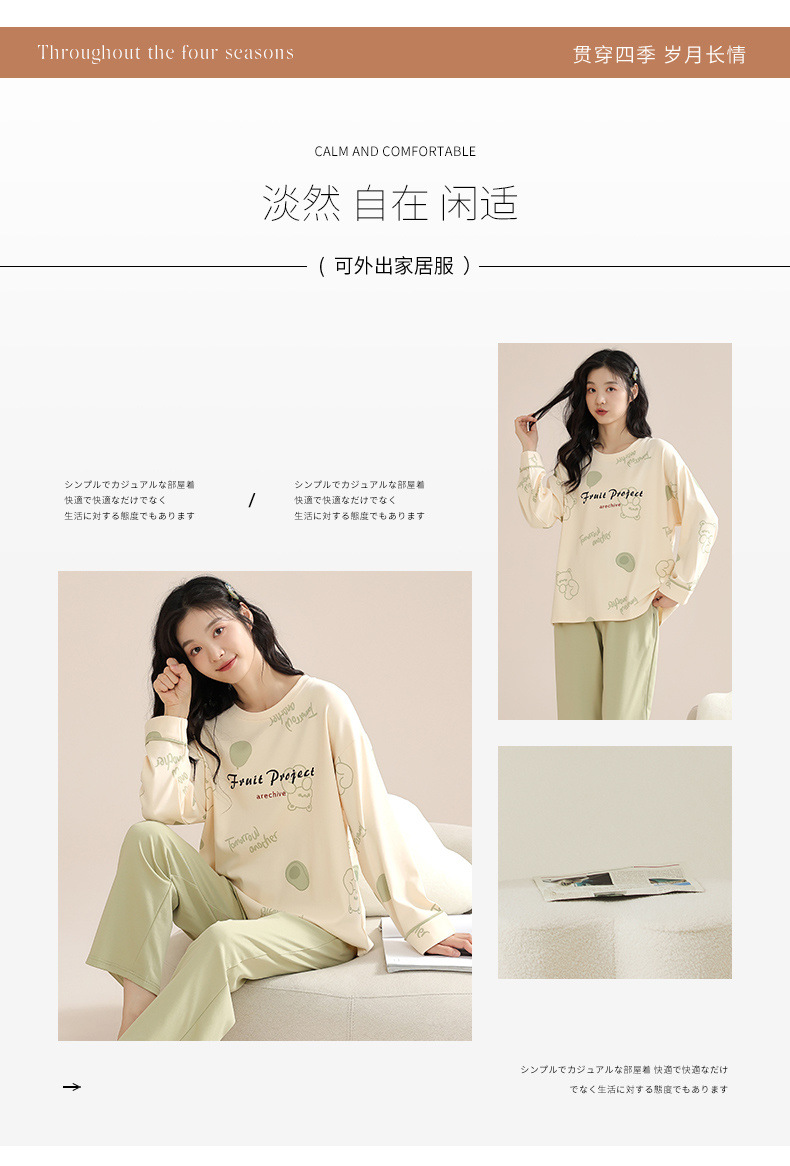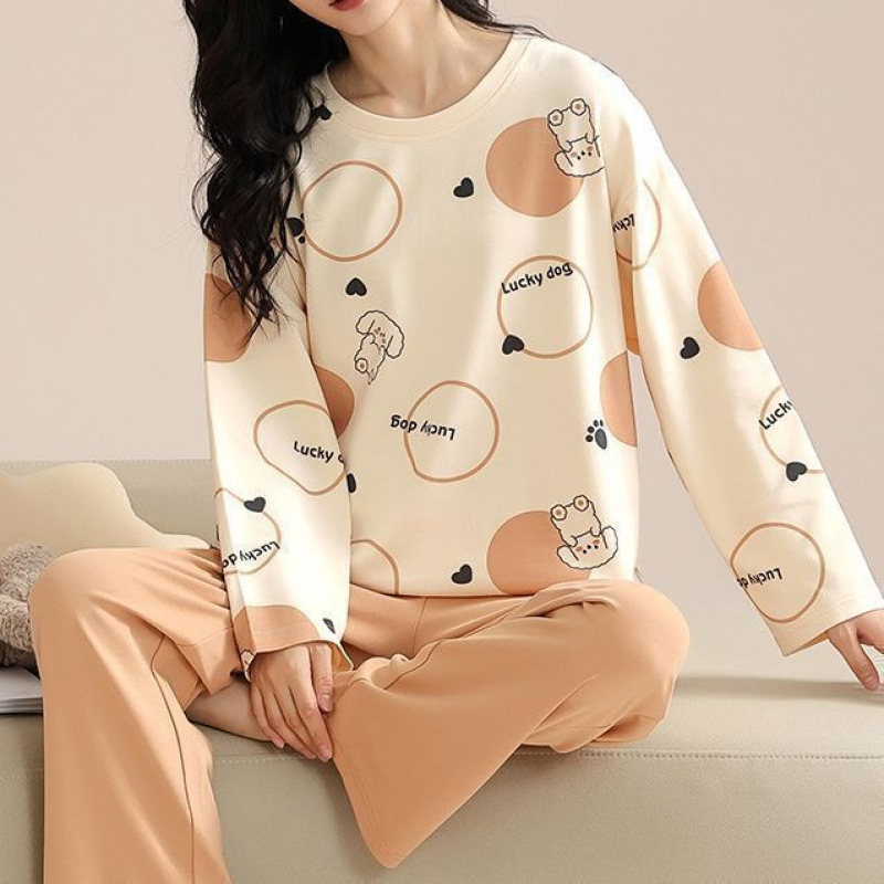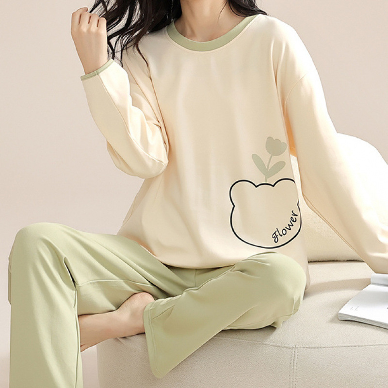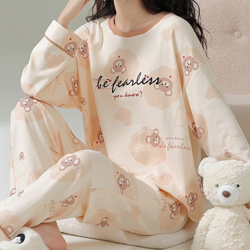 100% 면 고급 잠옷 여성 봄과 가을 긴 소매 면화 학생 기숙사 겉옷 홈 세트스토어 가기