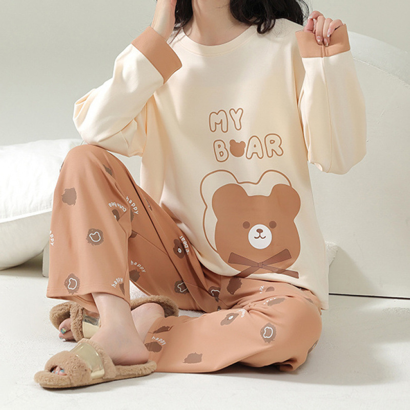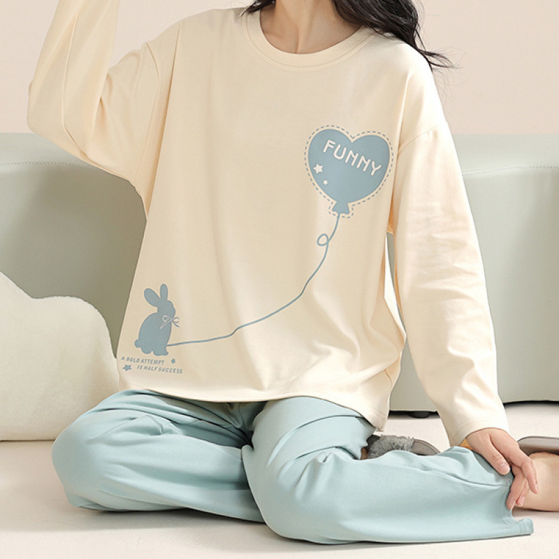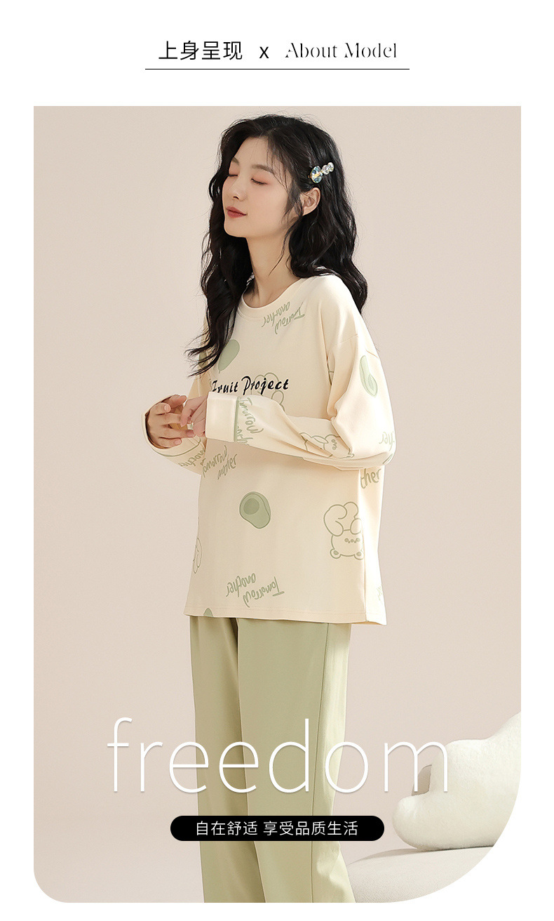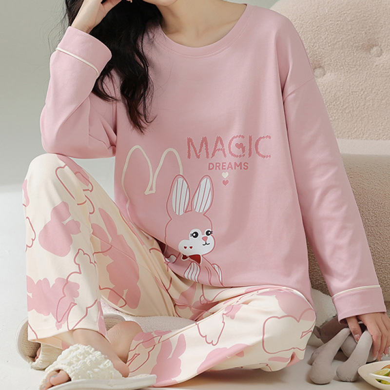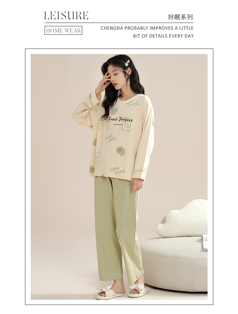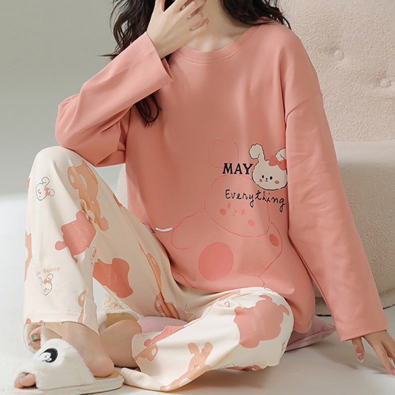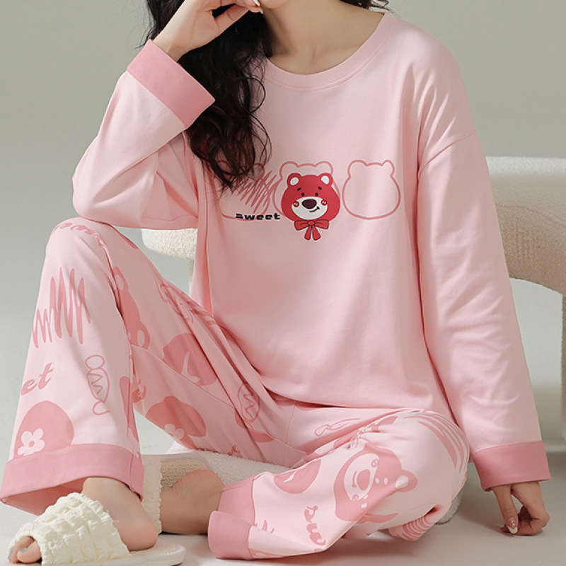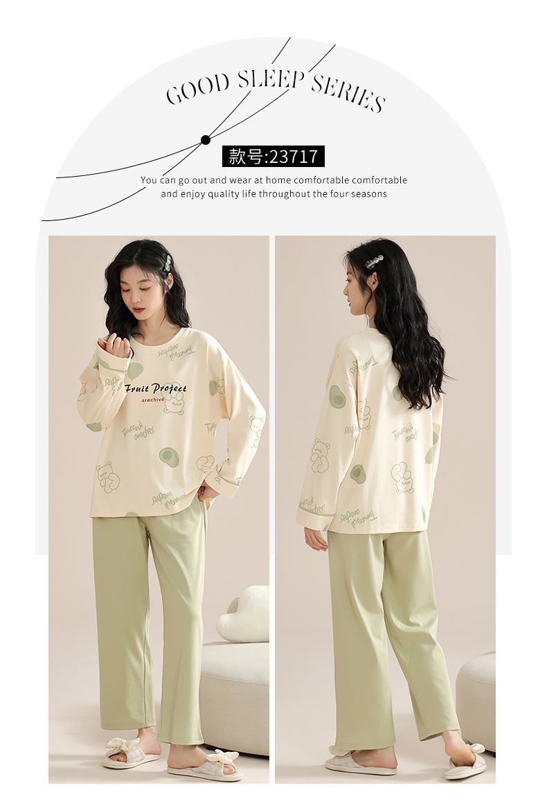 100% 면 고급 잠옷 여성 봄과 가을 긴 소매 면화 학생 기숙사 겉옷 홈 세트스토어 가기
