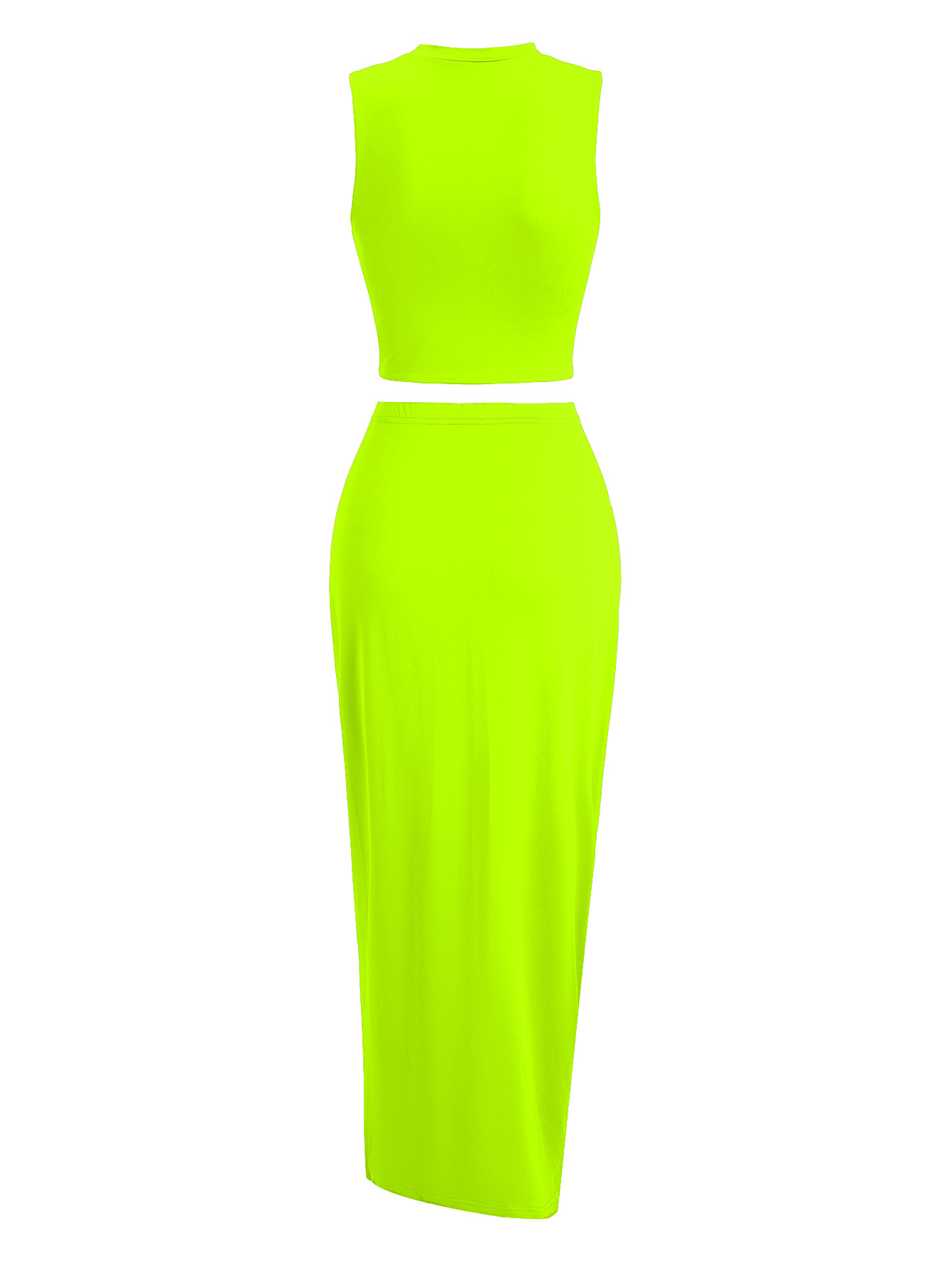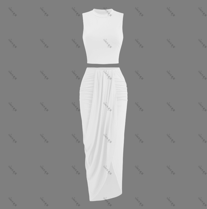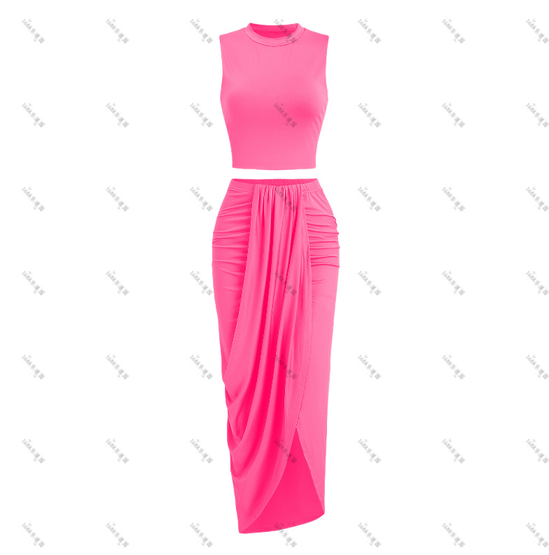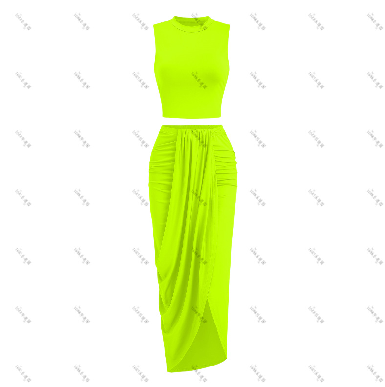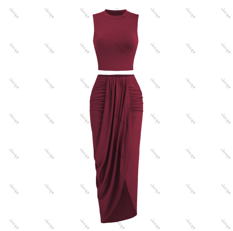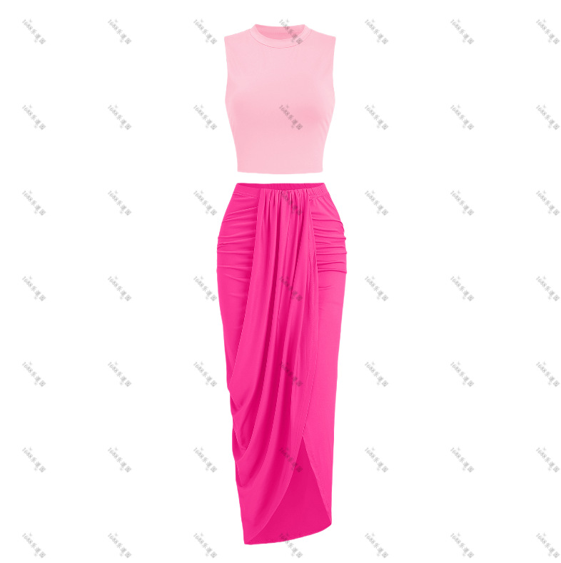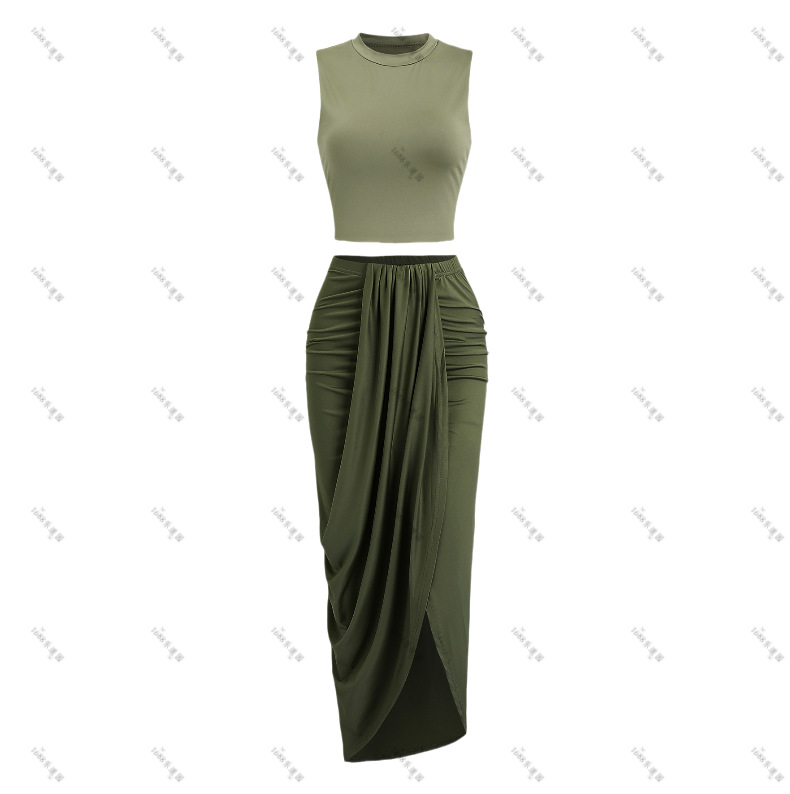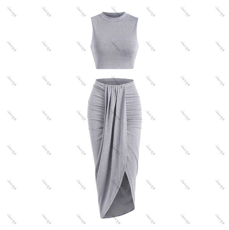 유럽 및 미국 해외 무역 여성 패션 다용도 캐주얼 섹시 민소매 패셔너블 조끼 불규칙한 투피스 스커트 세트