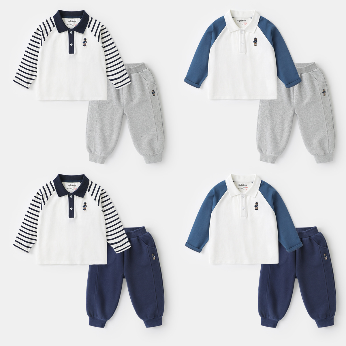 소년 봄 세트 아동복 아기의 폴로 셔츠 긴팔 티셔츠 스포츠 바지 봄과 가을 투피스 유행 UZ737