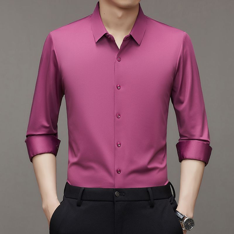 단색 무봉제 긴팔 셔츠 남성용 봄 가을 아이스 실크 다림질 필요 없는 비즈니스 캐주얼 셔츠 남성용 기본 비즈니스 신사복