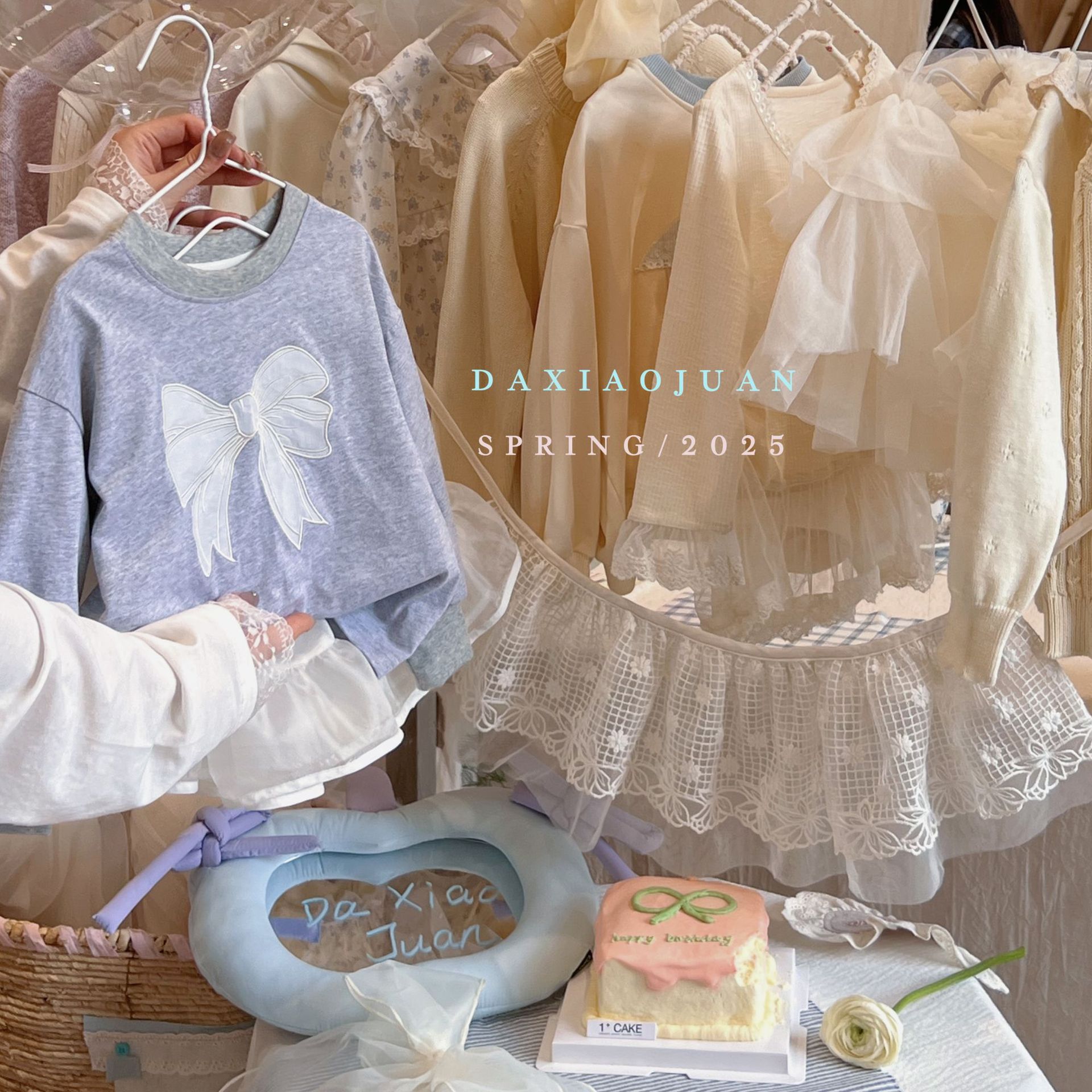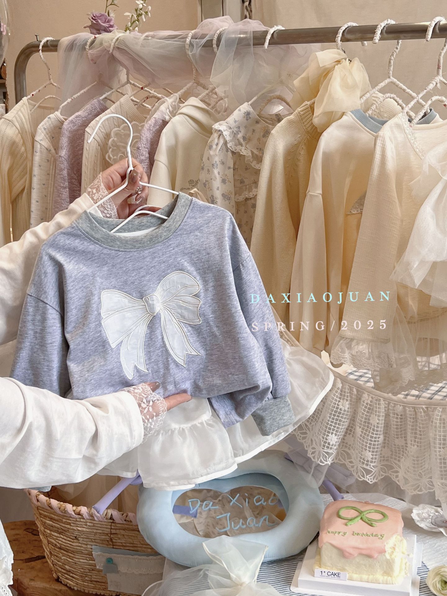 사이즈 롤 25 봄과 가을 소녀 얇은 둥근 목 큰 활 스웨트 셔츠 소녀 인기 캐주얼스토어 가기