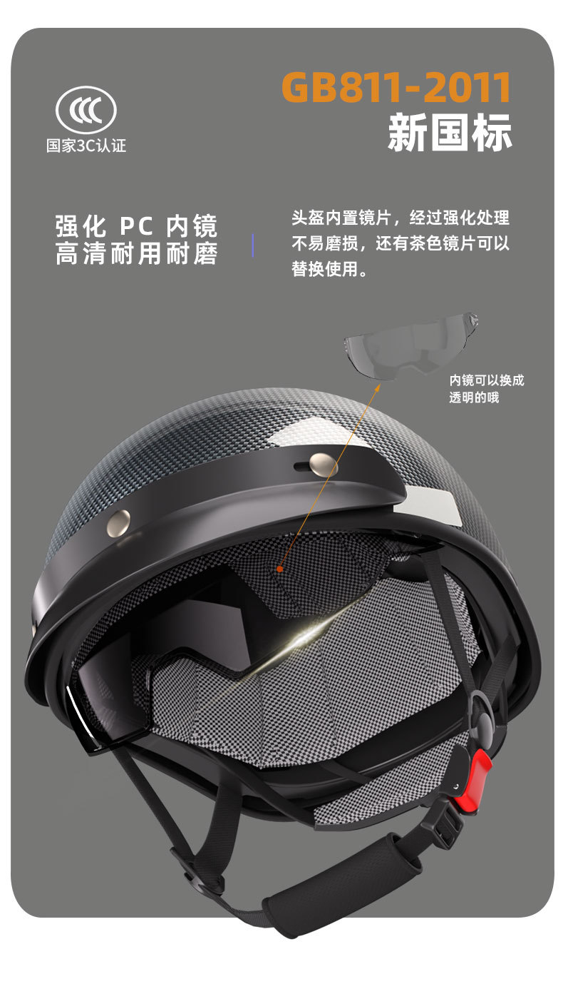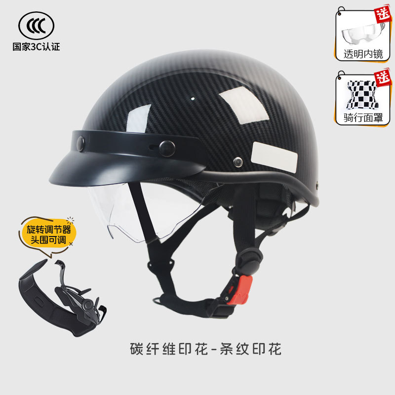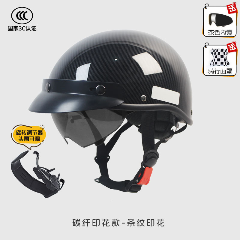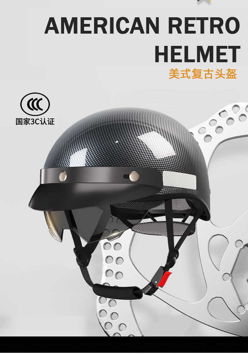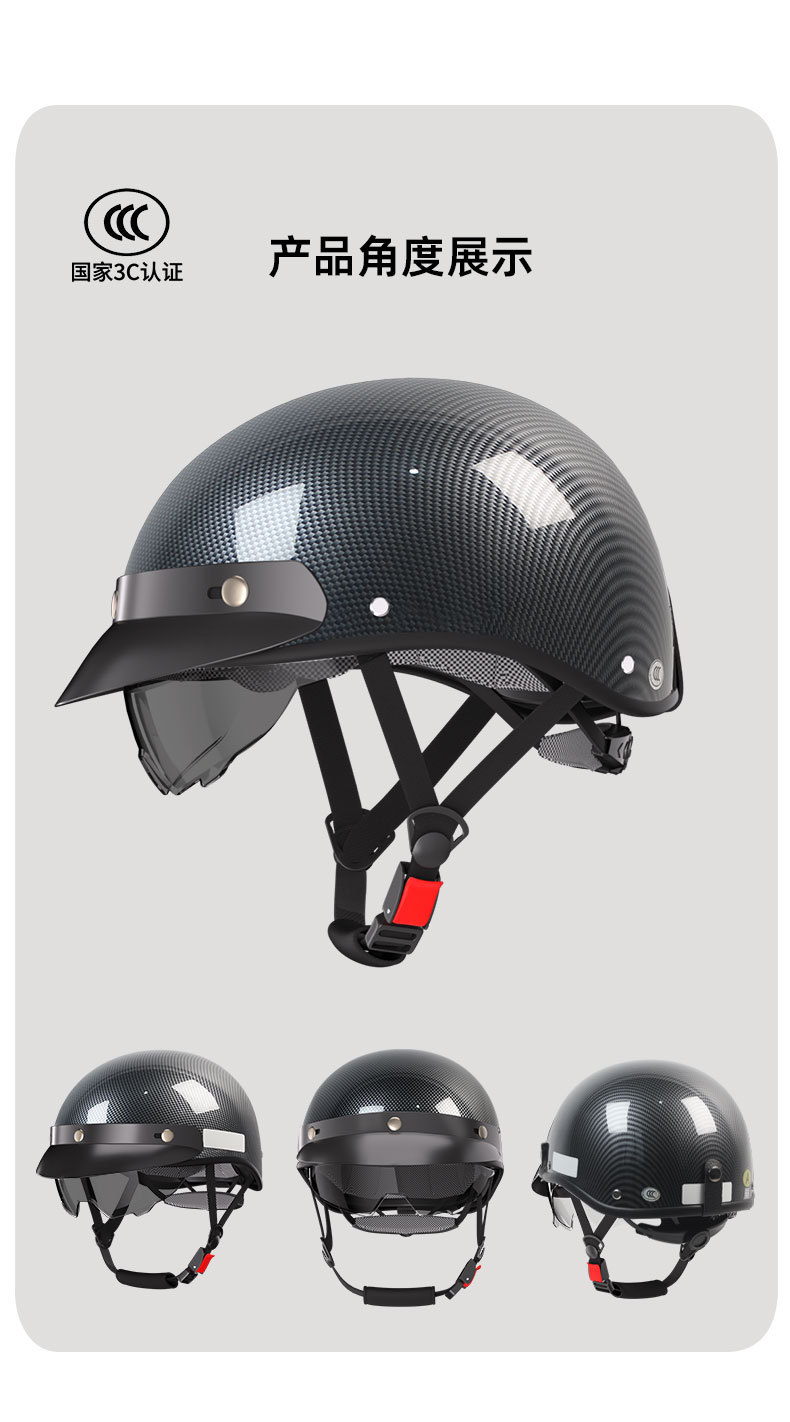 3C 인증 할리 레트로 하프 헬멧 전기 자동차 오토바이 헬멧 사계절 여름 헬멧 남성과 여성 탄소 섬유