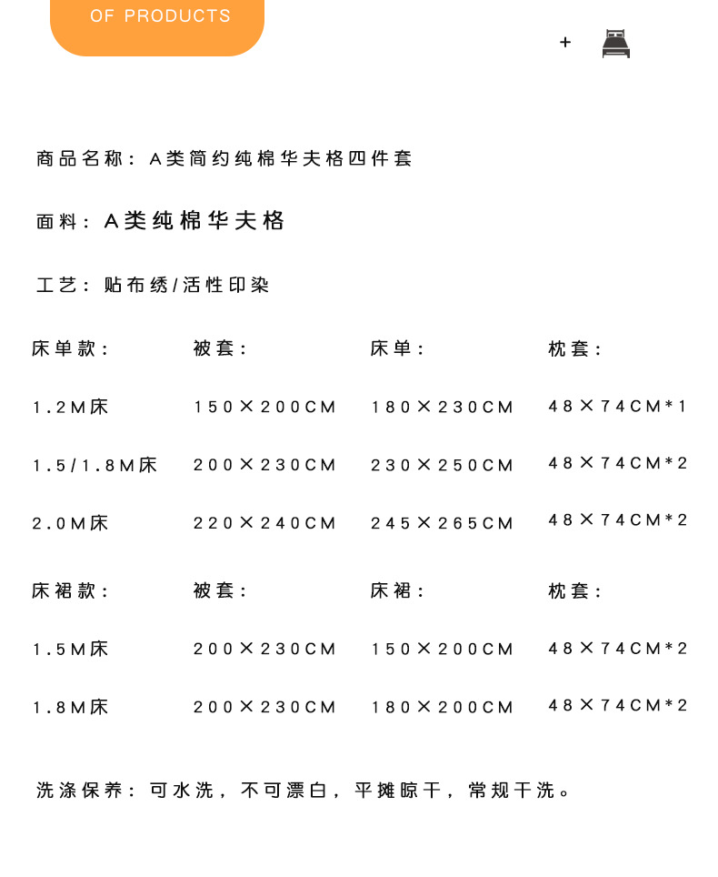 • 2.0m 침대 [시트 4종 세트] - 220x240cm 이불심에 적합