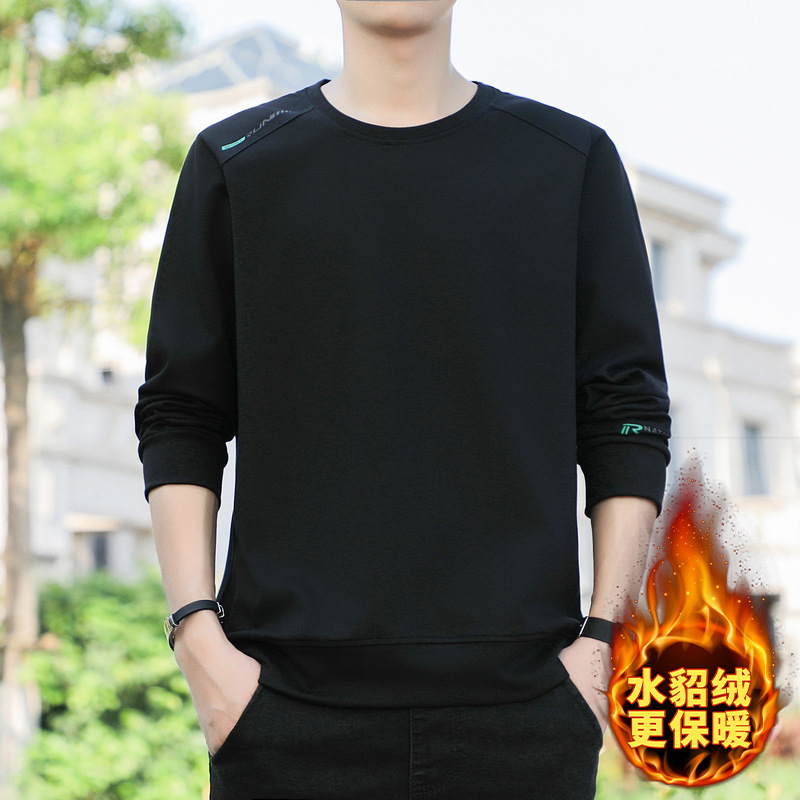 남성용 가을 겨울 기모 라운드넥 풀오버 스웨트셔츠, 다용도 빅사이즈 이너웨어, 청년 스포츠웨어 남성 상의스토어 가기