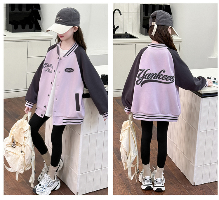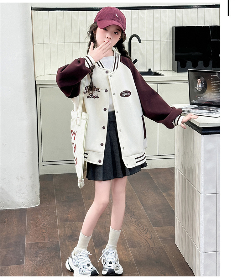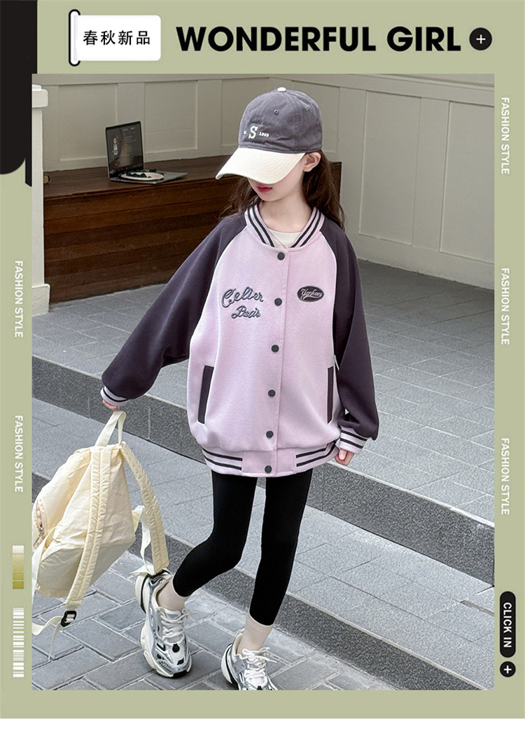 여자 야구 세트 코트 봄 새로운 한국 스타일 느슨한 패셔너블 어린이 세트 서양식 소녀 탑 후주 Zhili