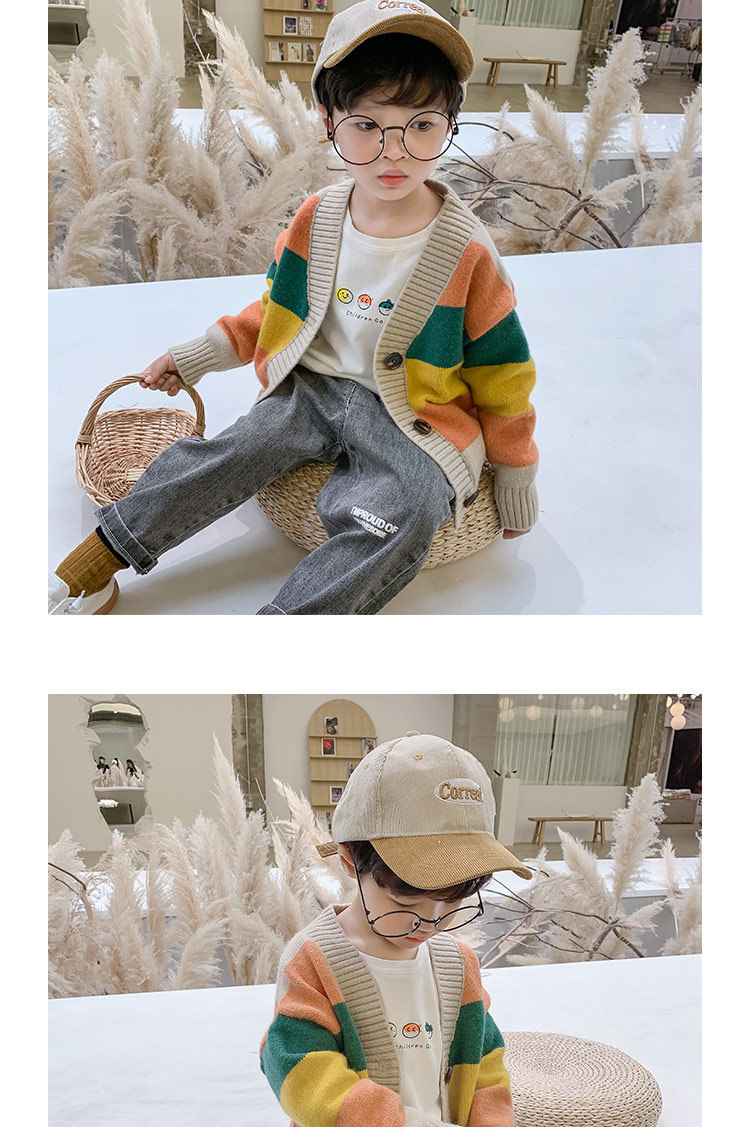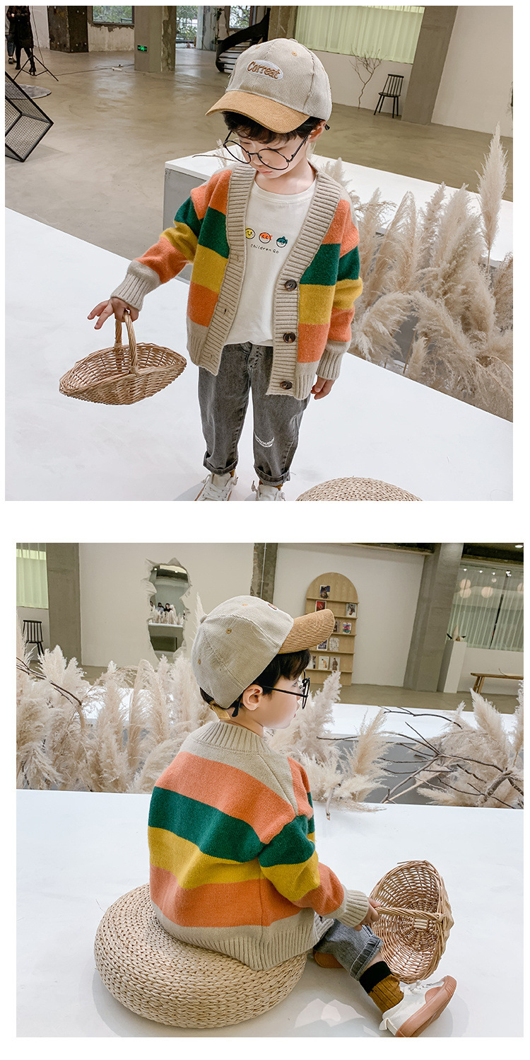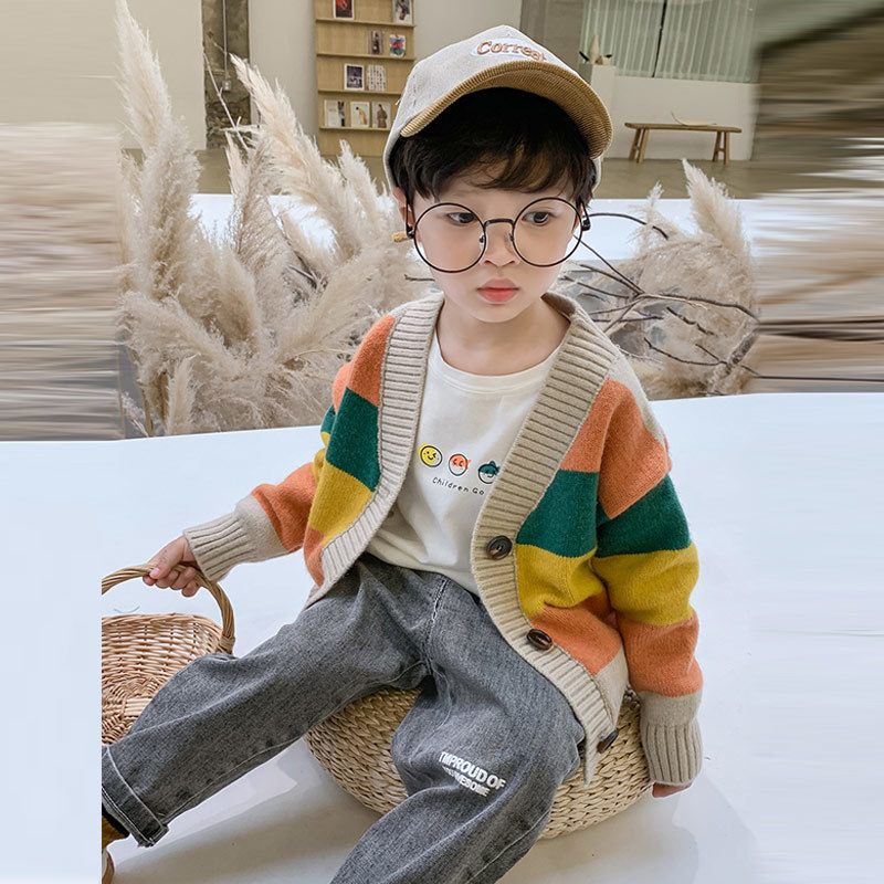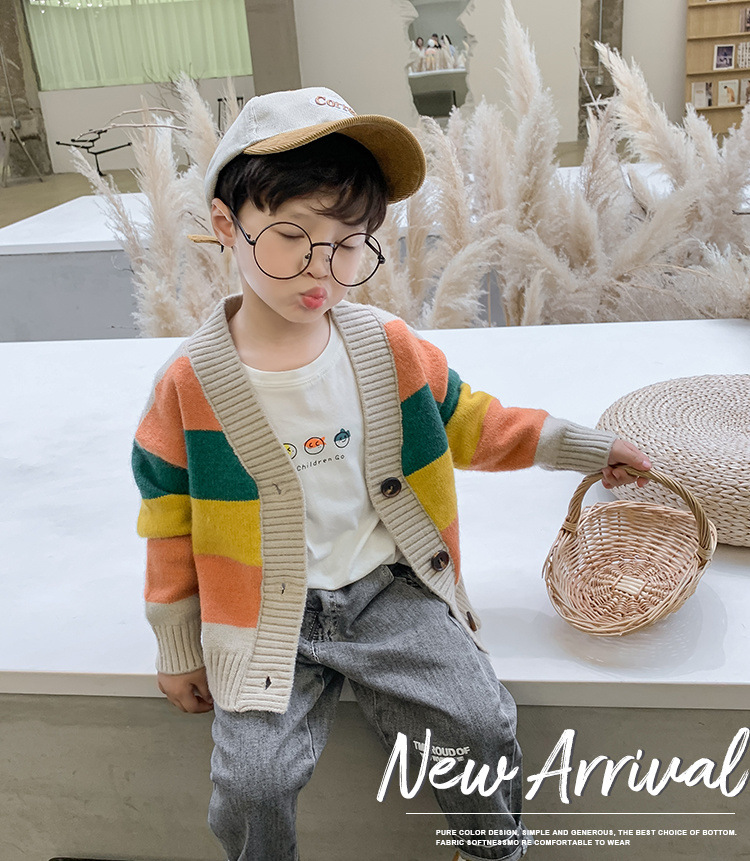 소년 카디건 코트 2024 봄 새 한국 줄무늬 니트 탑 아기 봄과 가을 서양식 스웨터 코트스토어 가기