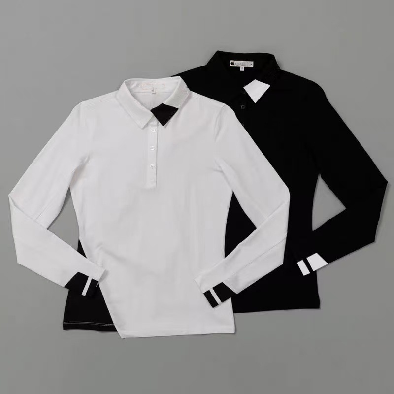 가을과 겨울 골프 여자 긴팔 폴로 셔츠 스포츠 티셔츠 컬러 매칭 탄성 슬리밍 선 스크린 통기성 빠른 건조 저지스토어 가기