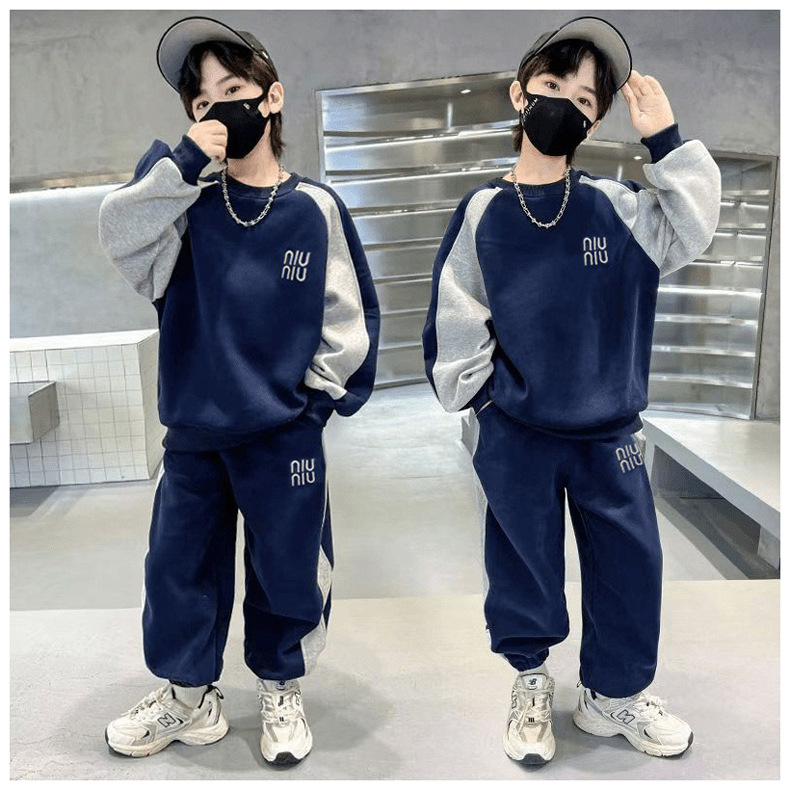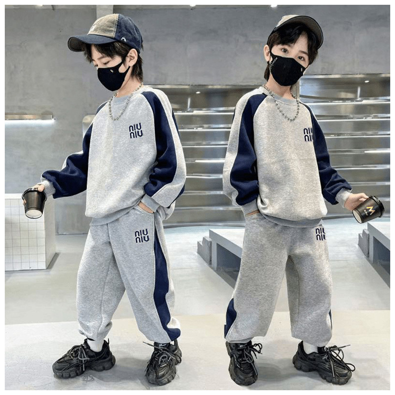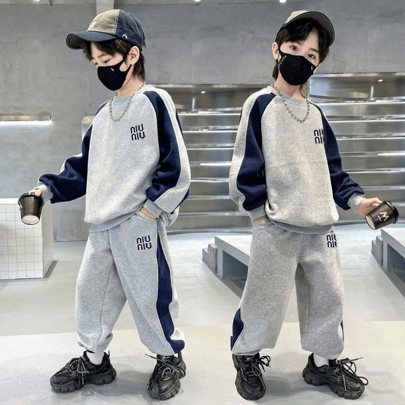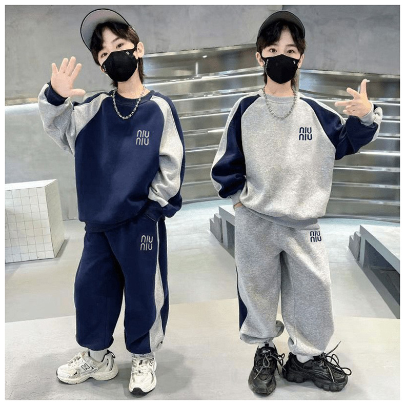 봄과 가을 어린이 편지 인쇄 스티칭 크루 넥 스웨트 셔츠 바지 두 조각 세트 큰 어린이 느슨한 스포츠 레저 세트스토어 가기
