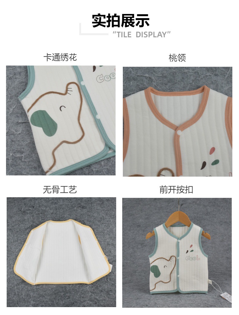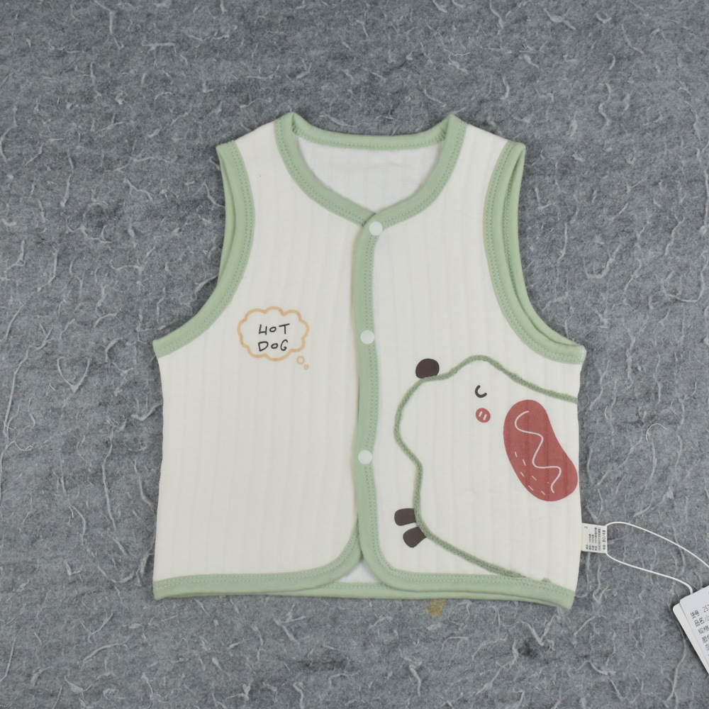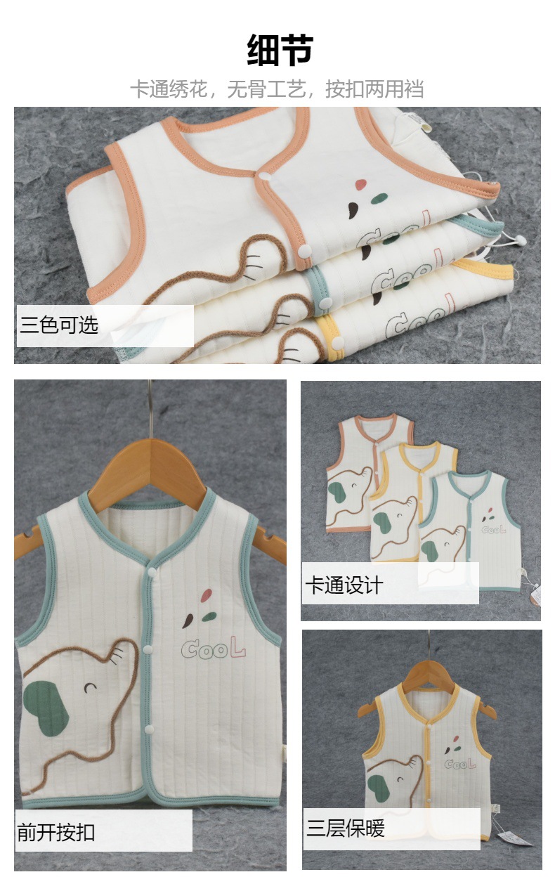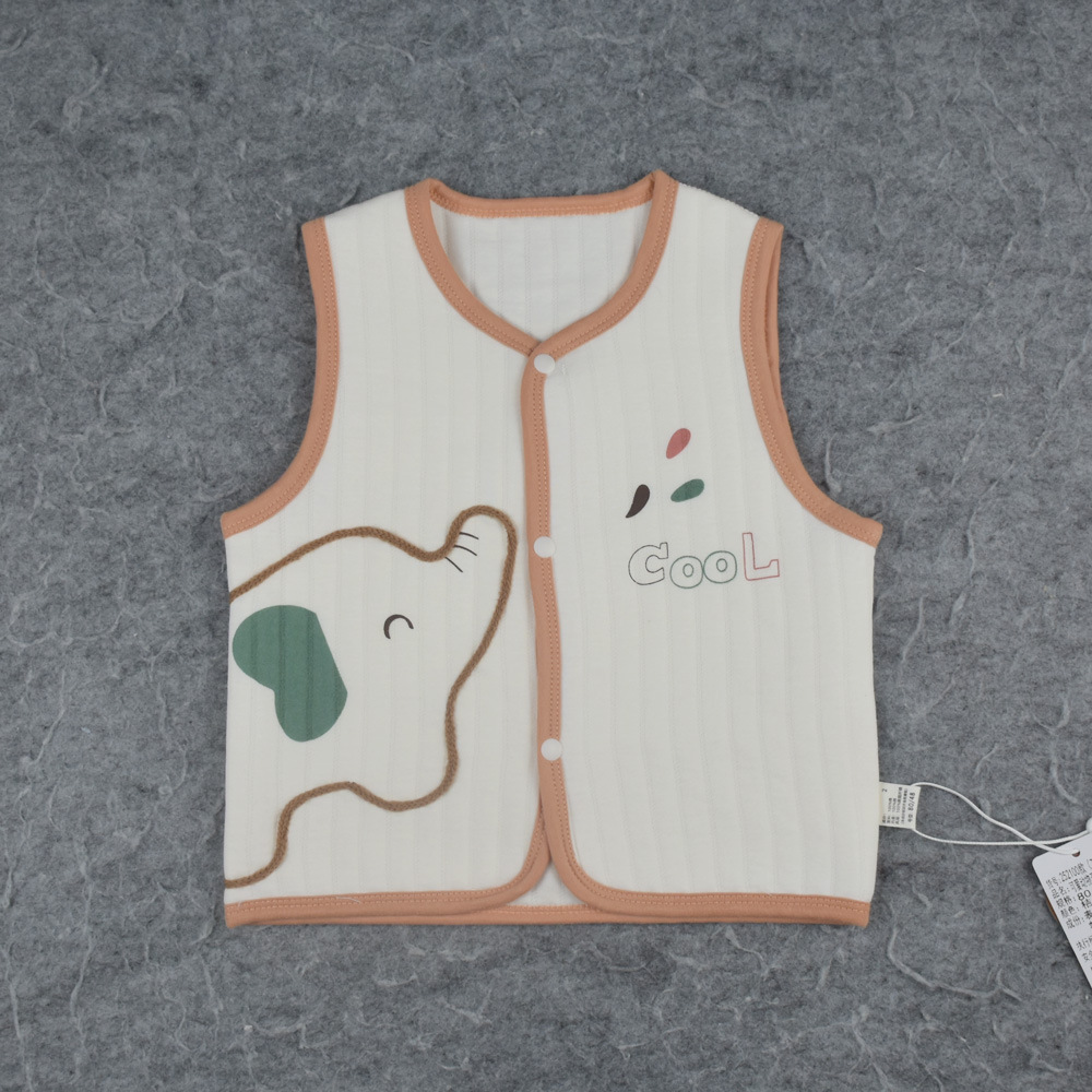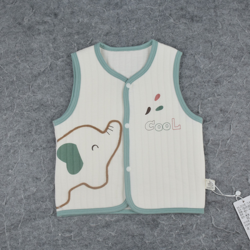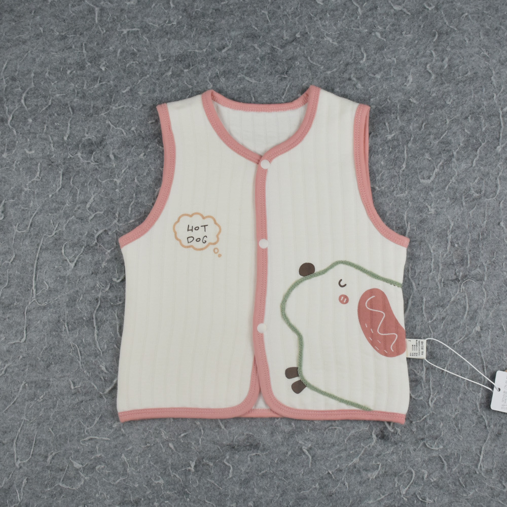 25 봄과 가을 새로운 아기 3 층 따뜻한 조끼 만화 수 놓은 아기 얇은 면화 조끼 전면 스냅 버튼 조끼스토어 가기