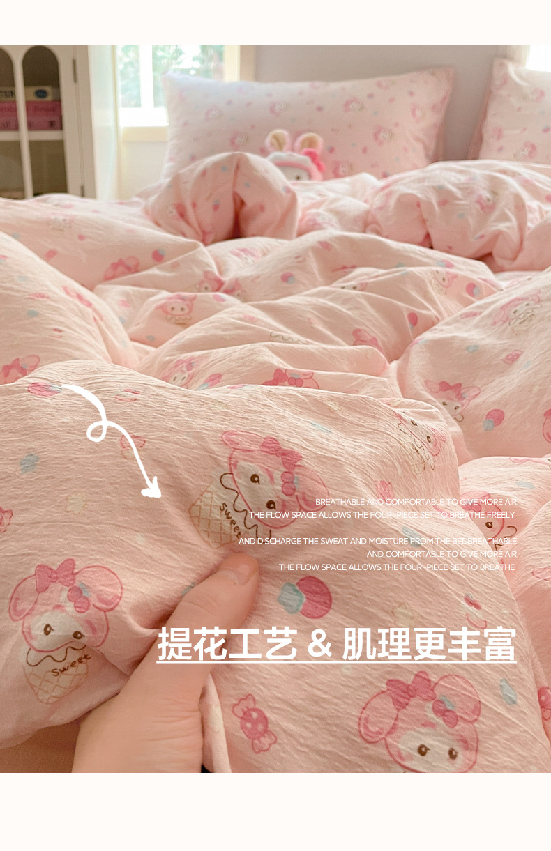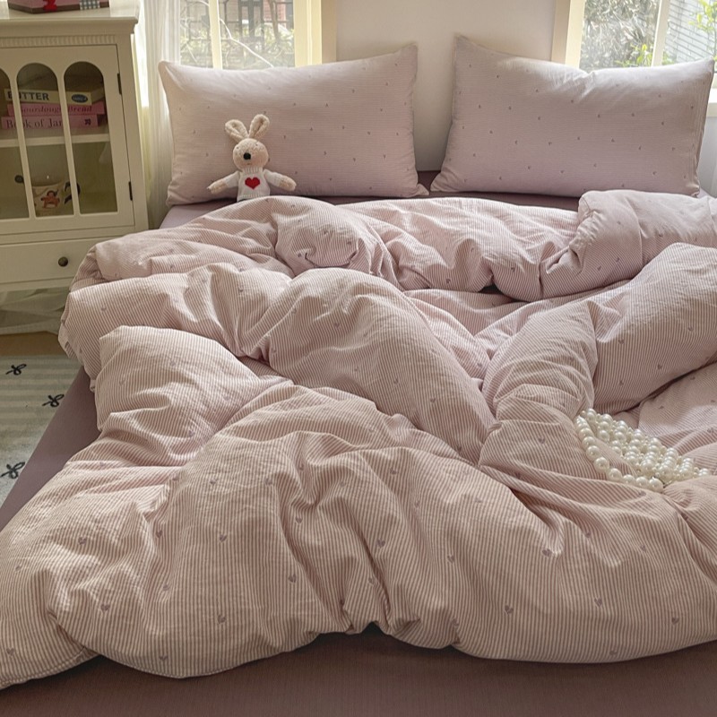 25 새로운 자카드 4 피스 세트 클라우드 센스 더블 레이어 원사 벗은 슬리핑 퀼트 커버 소녀 침상 침대 시트 3 피스 세트