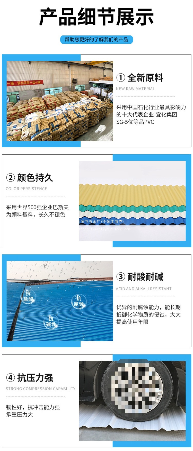 PVC 플라스틱 타일 난연 부식 방지 지붕 타일 두껍게 내구성있는 산 및 알칼리성 온실 지붕 타일 제조 업체스토어 가기