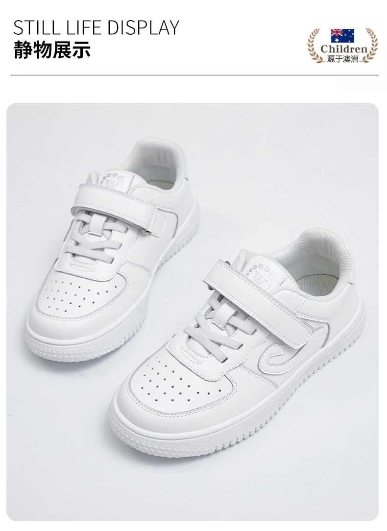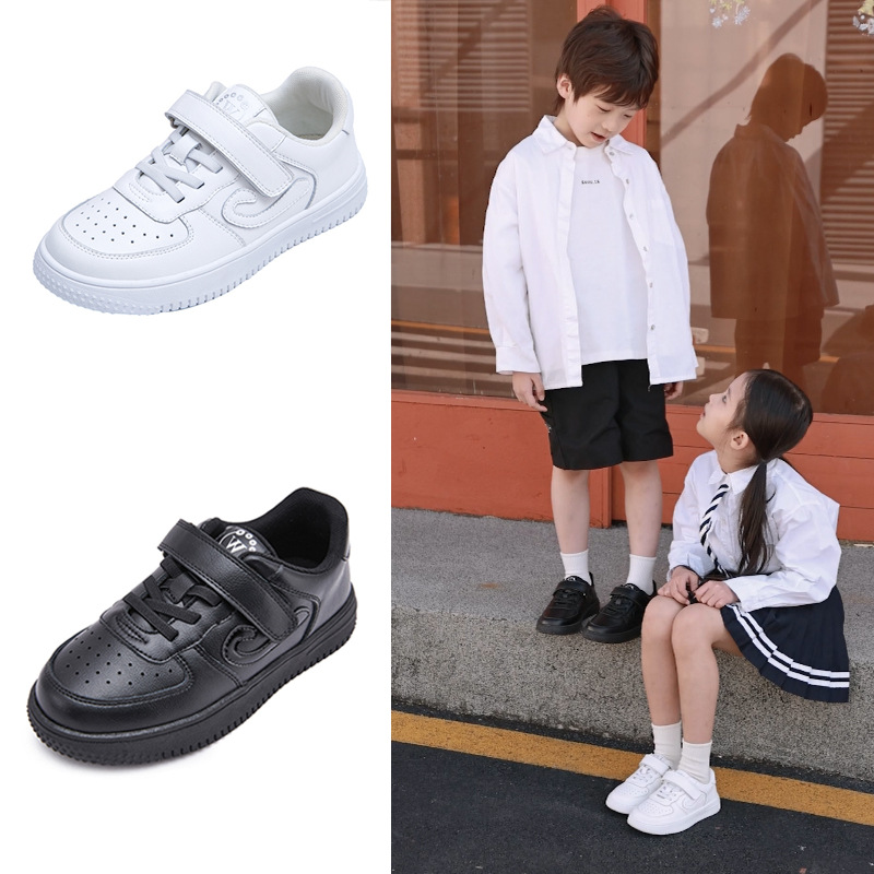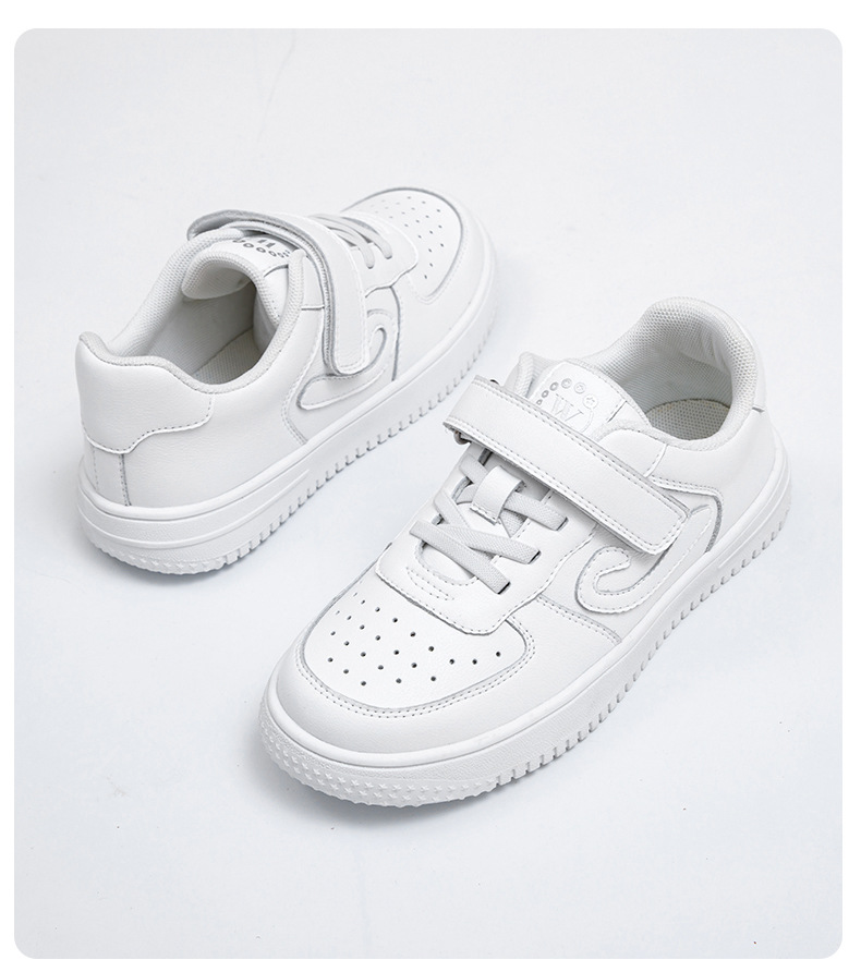 아동화, 천연가죽 벨크로, 흰색 신발, 미끄럼 방지 남아 운동화, 통기성 여아 신발, 6-12 사계절 학생화