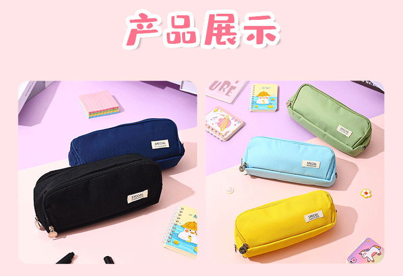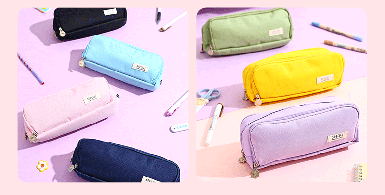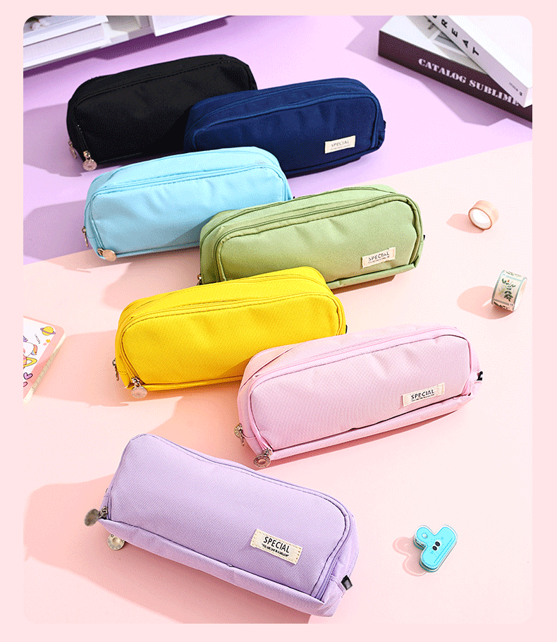 초등학생용 대용량 문구 가방, 다색 심플 한국 스타일 PU 필통, 문구류 수납, 크로스보더 더블 윈도우 필통스토어 가기