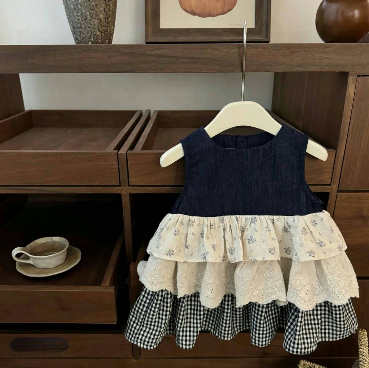 소녀의 봄과 여름 2025 새로운 모리 스타일 아기 소녀의 꽃 무늬 바느질 케이크 스커트 봄 원피스 공주 원피스스토어 가기