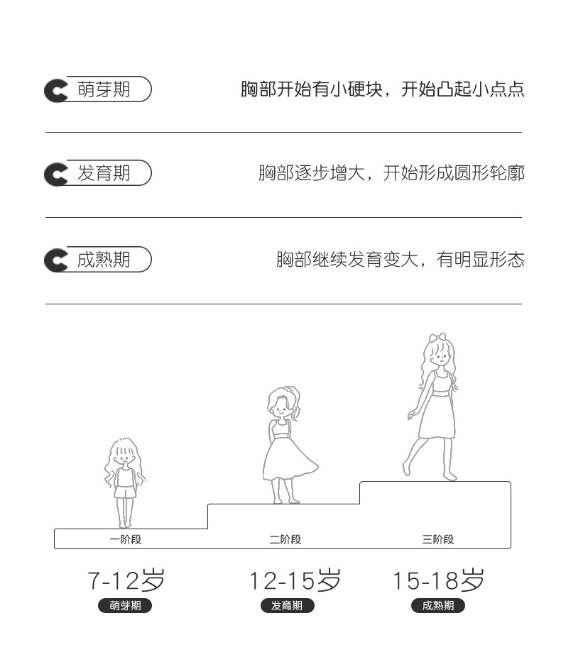 개발의 첫 번째 단계, 십대 소녀 속옷, 사춘기, 반 범프, 여아 브라, 학생, 중학교, 여성 고정 컵 브래지어스토어 가기