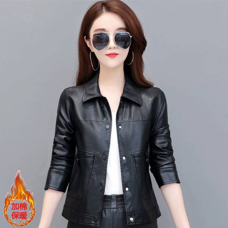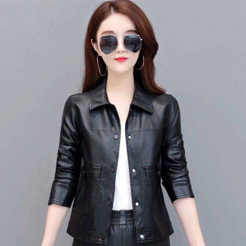 2025 새로운 봄과 가을 가죽 여성의 짧은 슬림 핏 슬리밍 여성의 작은 가죽 자켓 캐주얼 가죽 자켓 플러스 사이즈스토어 가기