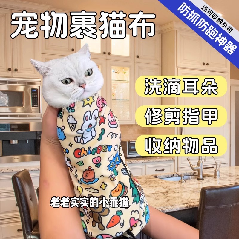 고양이 포장 천, 고양이 손톱 깎기 고정 팩, 긁힘 방지 및 물림 방지 고양이 포장 천, 탈출 방지 애완 동물 포장 천스토어 가기