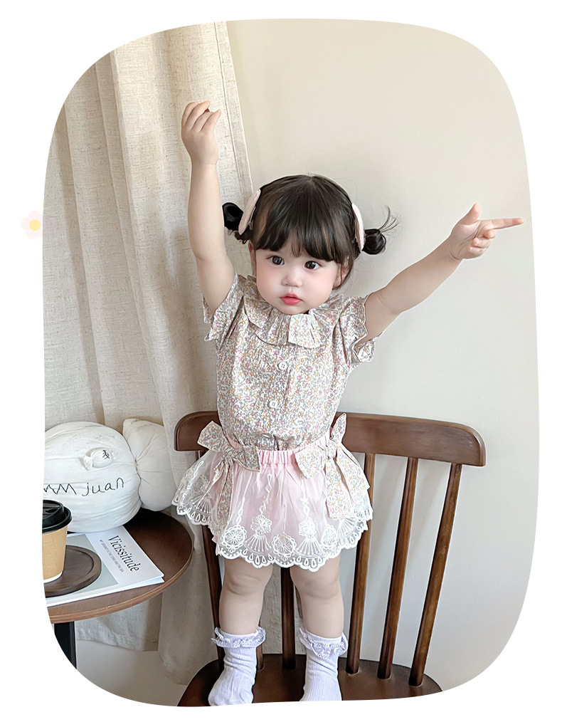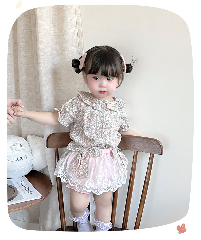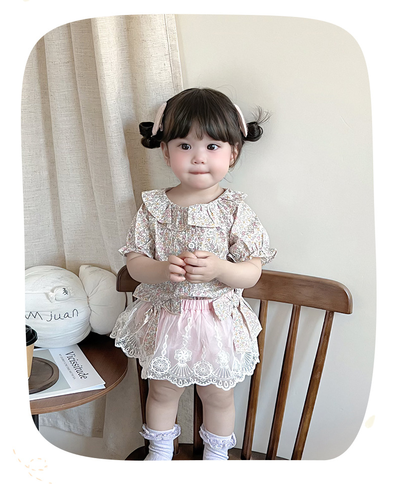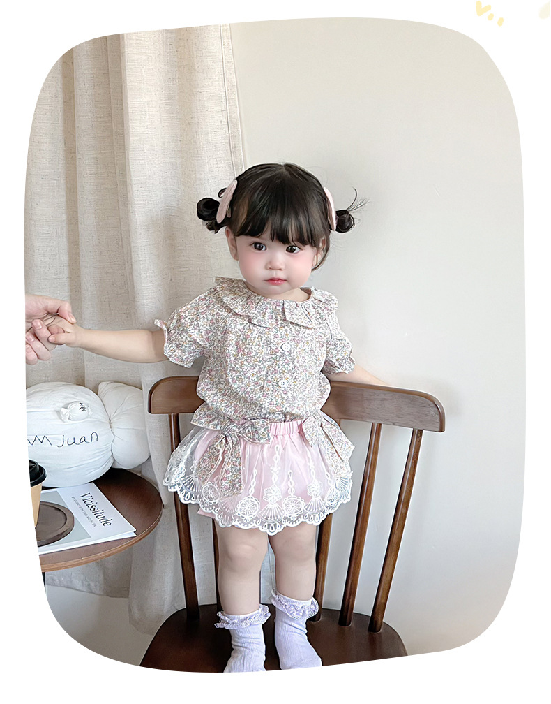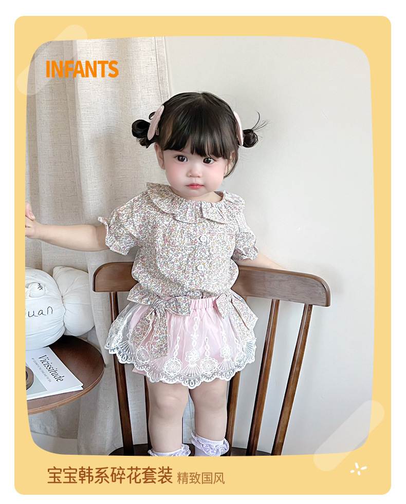 아기 소녀의 한국 스타일 꽃 세트 여름 공주 반팔 투피스 2217 여름 서양식 레이스 바지 원피스스토어 가기