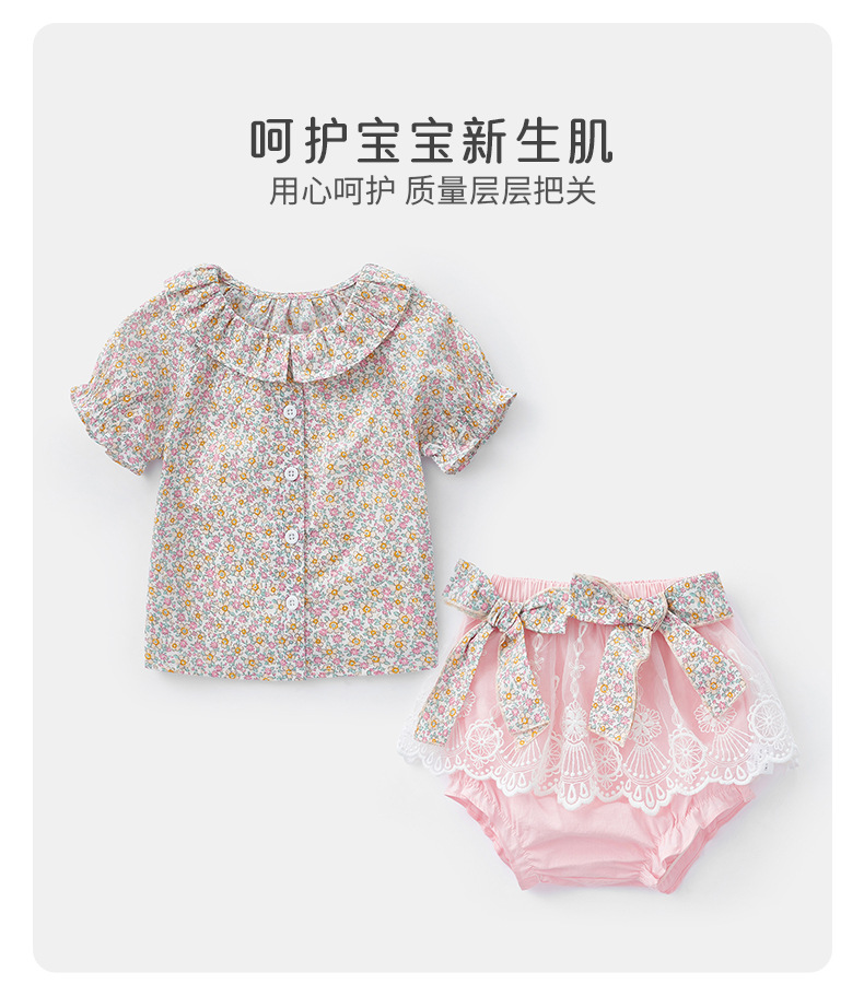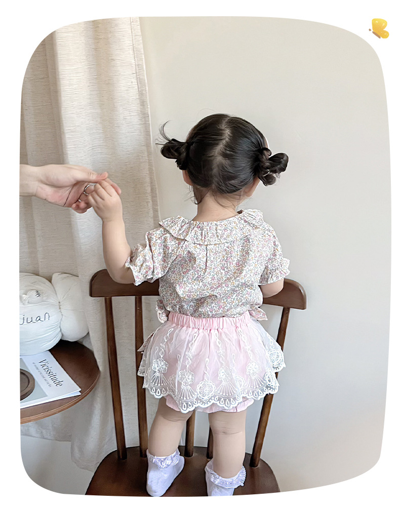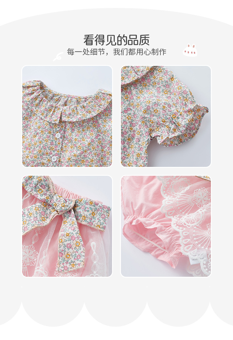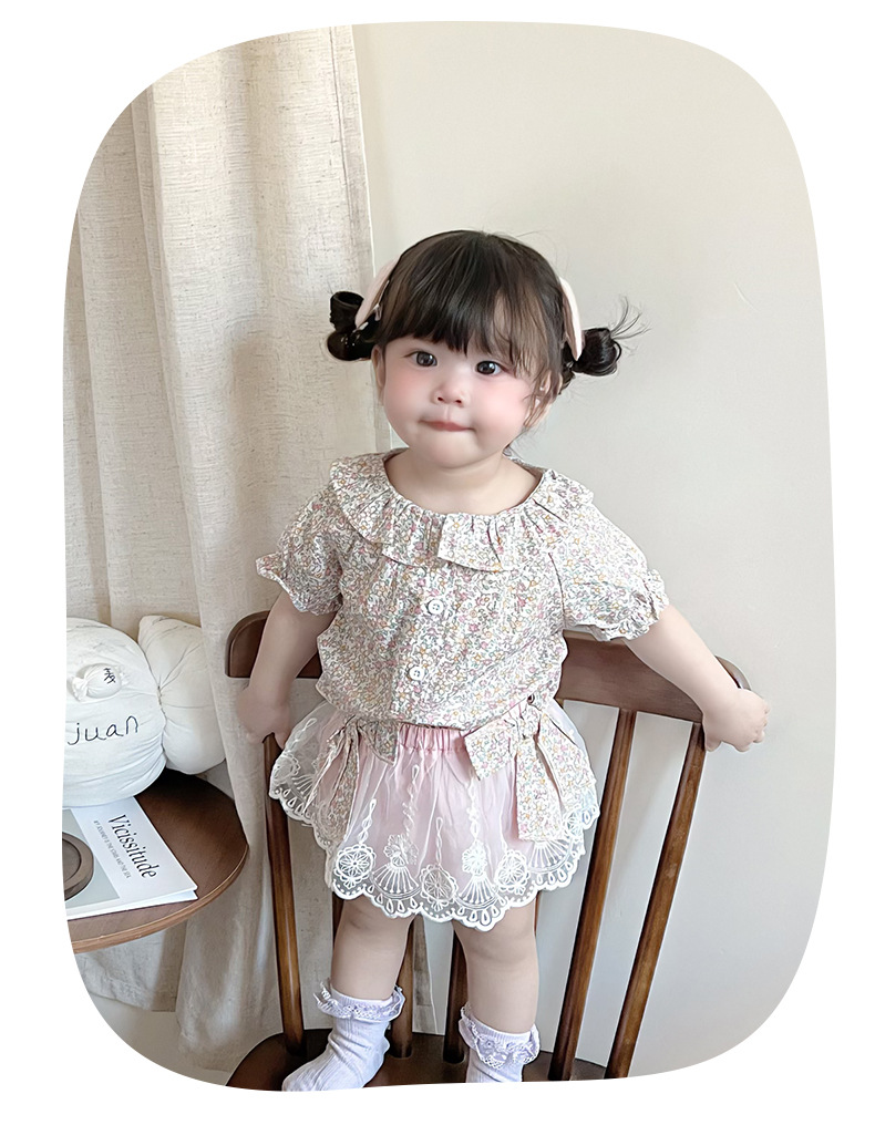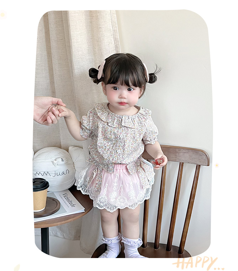 아기 소녀의 한국 스타일 꽃 세트 여름 공주 반팔 투피스 2217 여름 서양식 레이스 바지 원피스스토어 가기