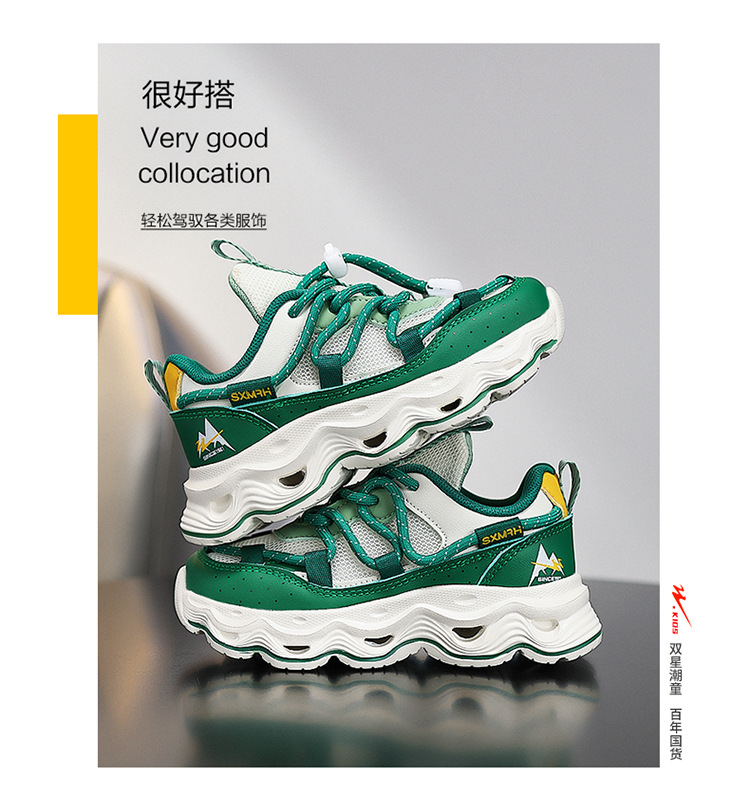 더블 스타 메쉬 90169 어린이 봄 새로운 통기성 더블 메쉬 러닝 슈즈 대형 어린이 내마모성 레이스 업 운동화