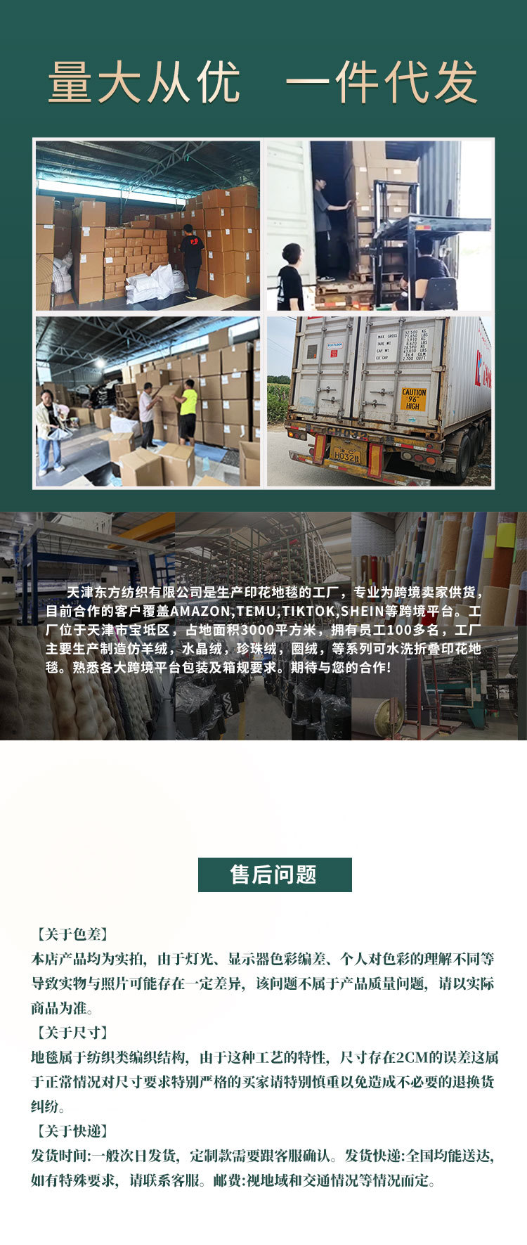 地毯、地垫种类繁多、锁粹,未能逐一上架,有其他需要或特殊要求、需要订造的朋友,可通过阿里旺旺与我联系,或直接拔打本店版头的手机号码与我取得联系。本店将竭尽所能,尽量为广大客户提供服务,满足客户的需求。