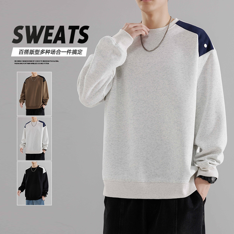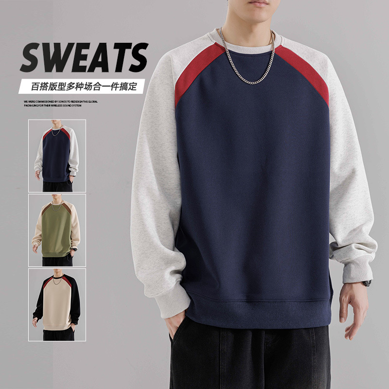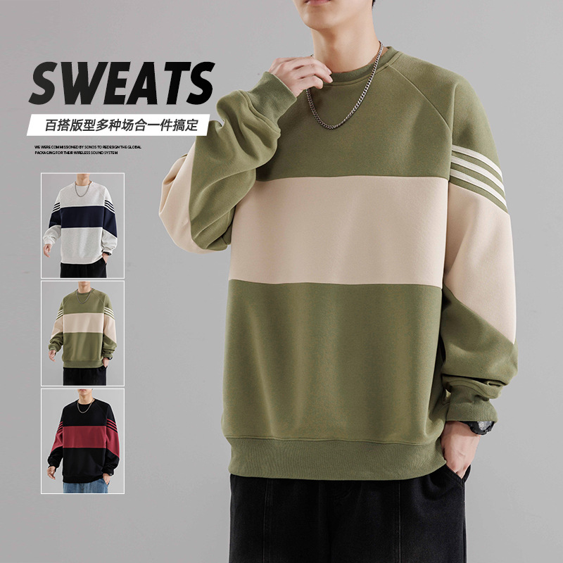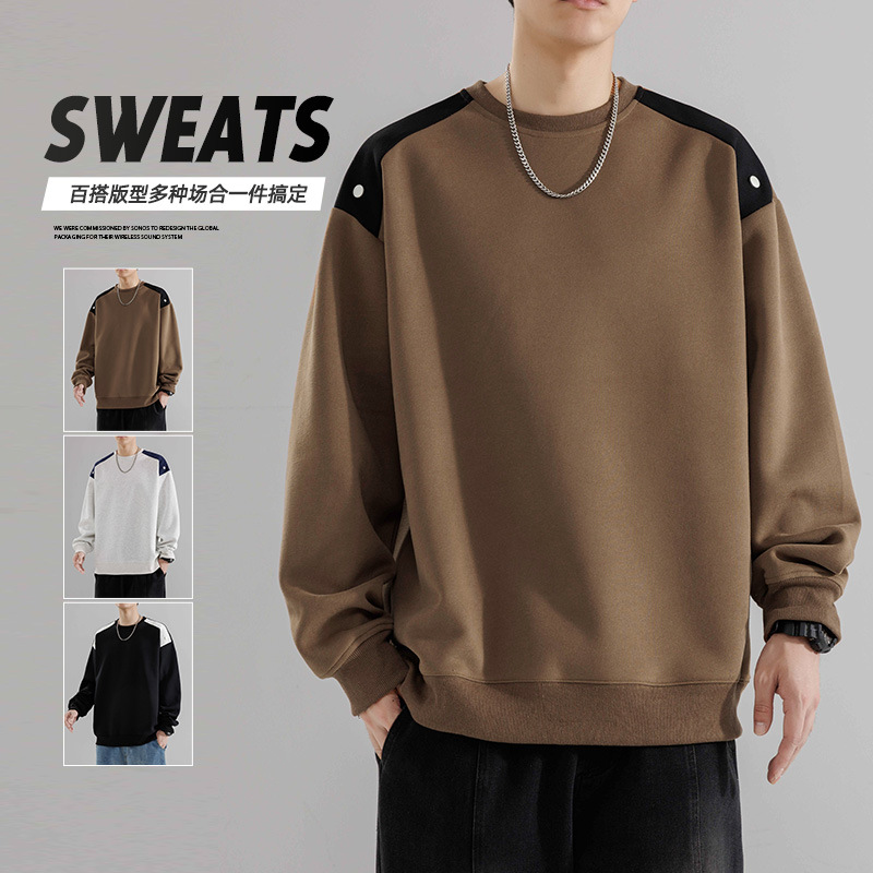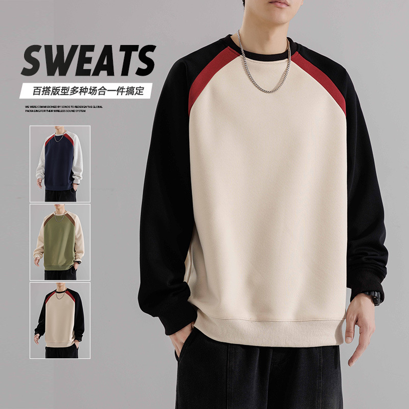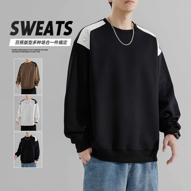 트렌디 브랜드 스웨트셔츠 남성용 라운드넥 2025 봄, 가을 하이스트리트 청소년 루즈한 긴팔 밑단 셔츠 커플 아메리칸 스타일 탑스토어 가기
