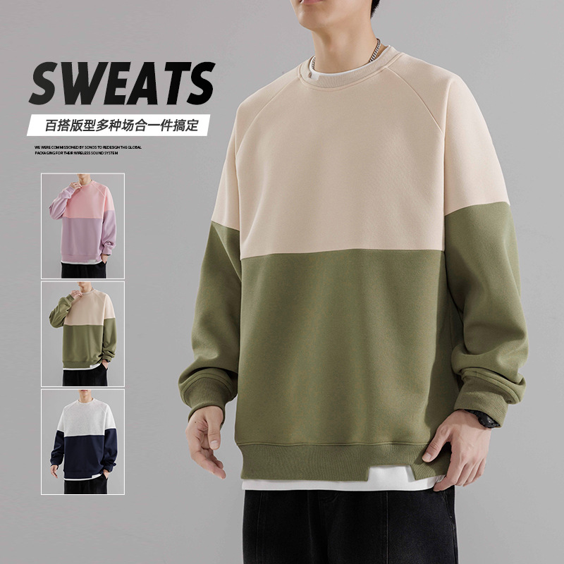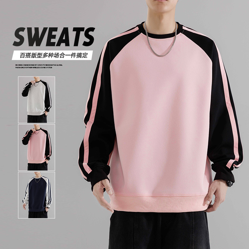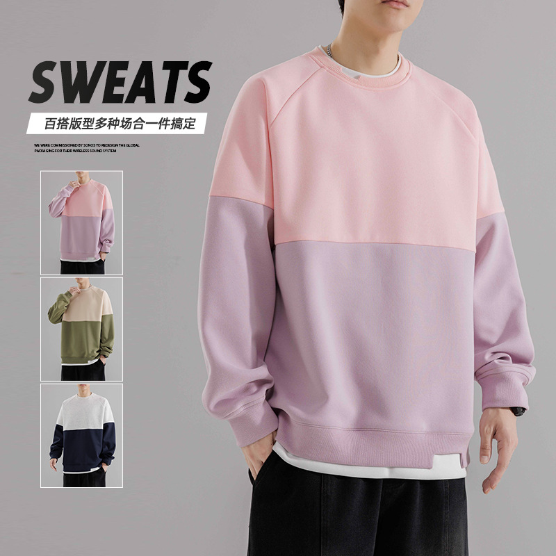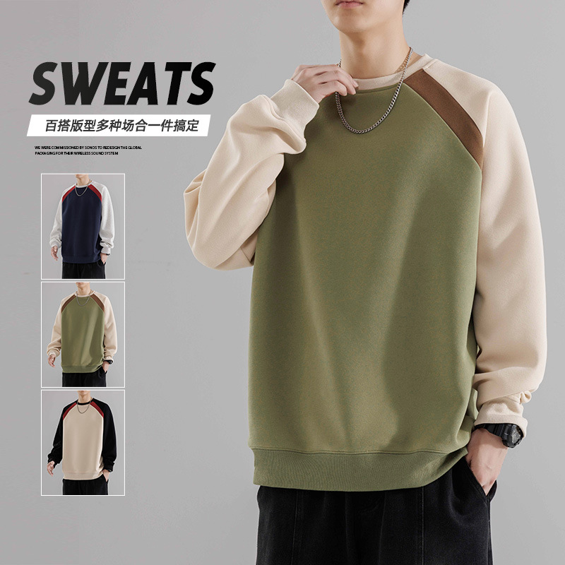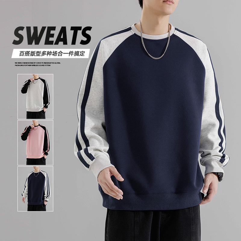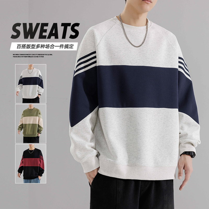 트렌디 브랜드 스웨트셔츠 남성용 라운드넥 2025 봄, 가을 하이스트리트 청소년 루즈한 긴팔 밑단 셔츠 커플 아메리칸 스타일 탑스토어 가기