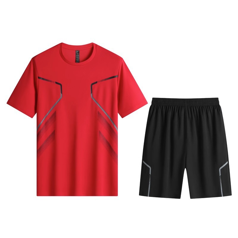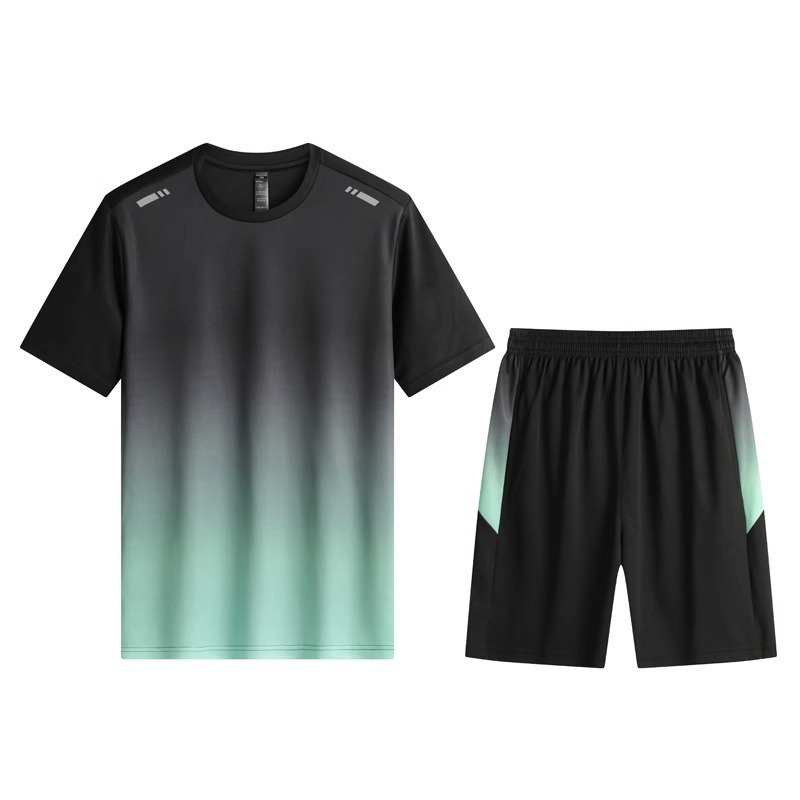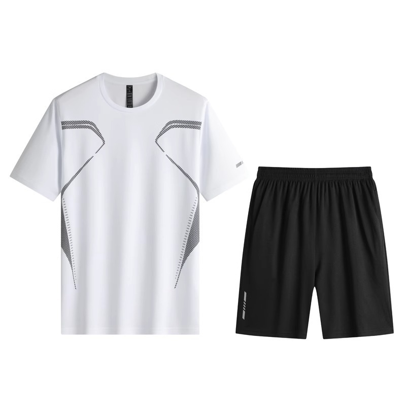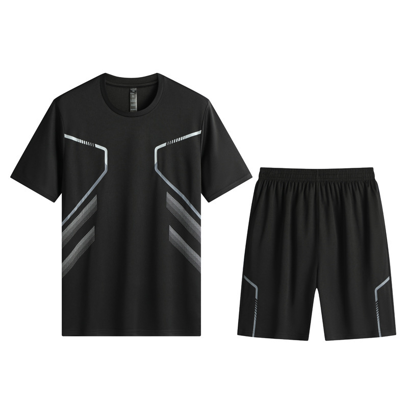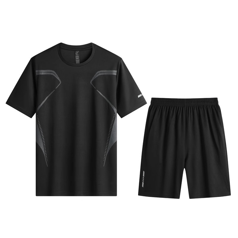 여름 실내 스포츠 반팔 세트 피트니스 여성 야외 달리기 빠른 건조 남성 아이스 실크 피트니스 의류 남성 도매 블랙