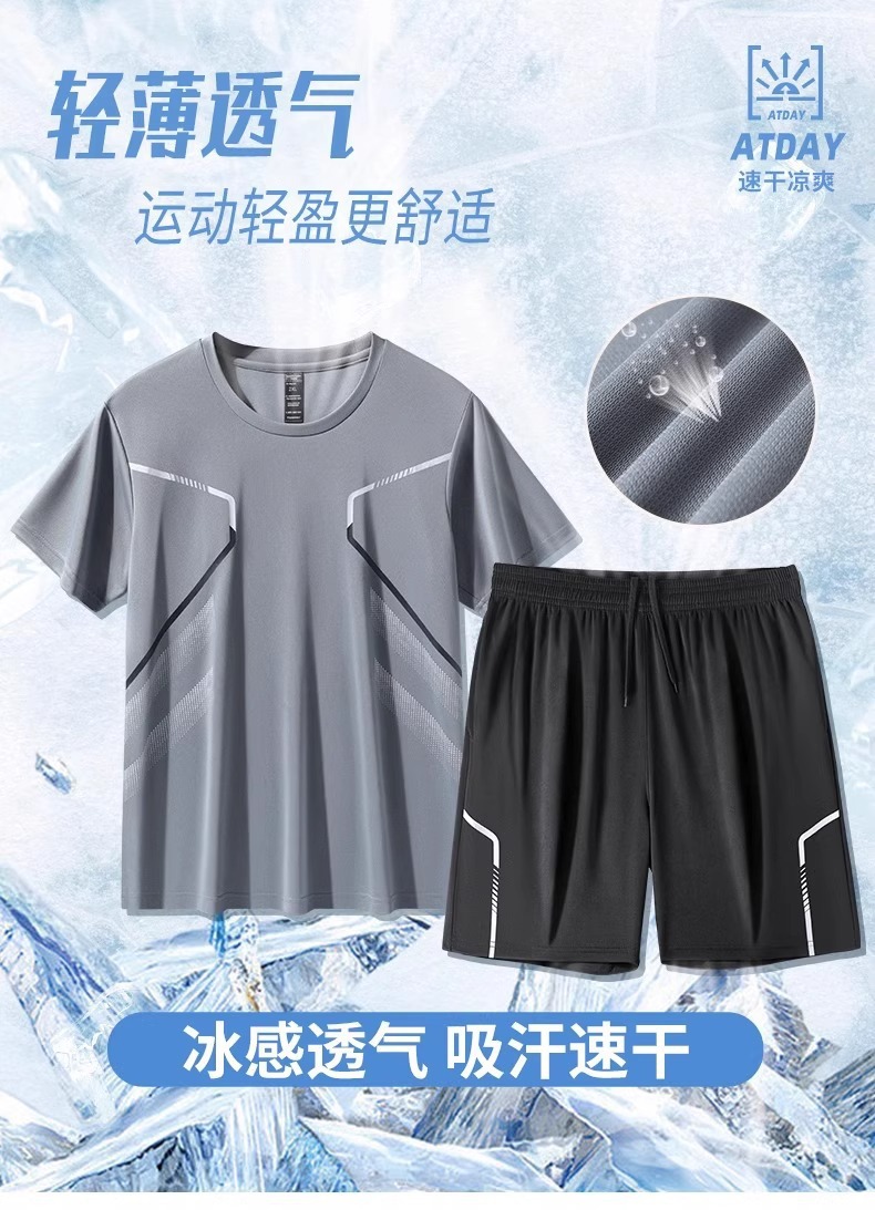 여름 실내 스포츠 반팔 세트 피트니스 여성 야외 달리기 빠른 건조 남성 아이스 실크 피트니스 의류 남성 도매 블랙스토어 가기