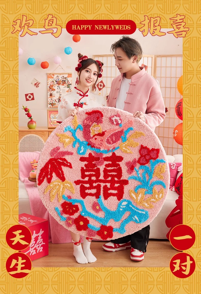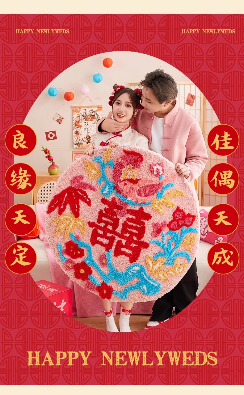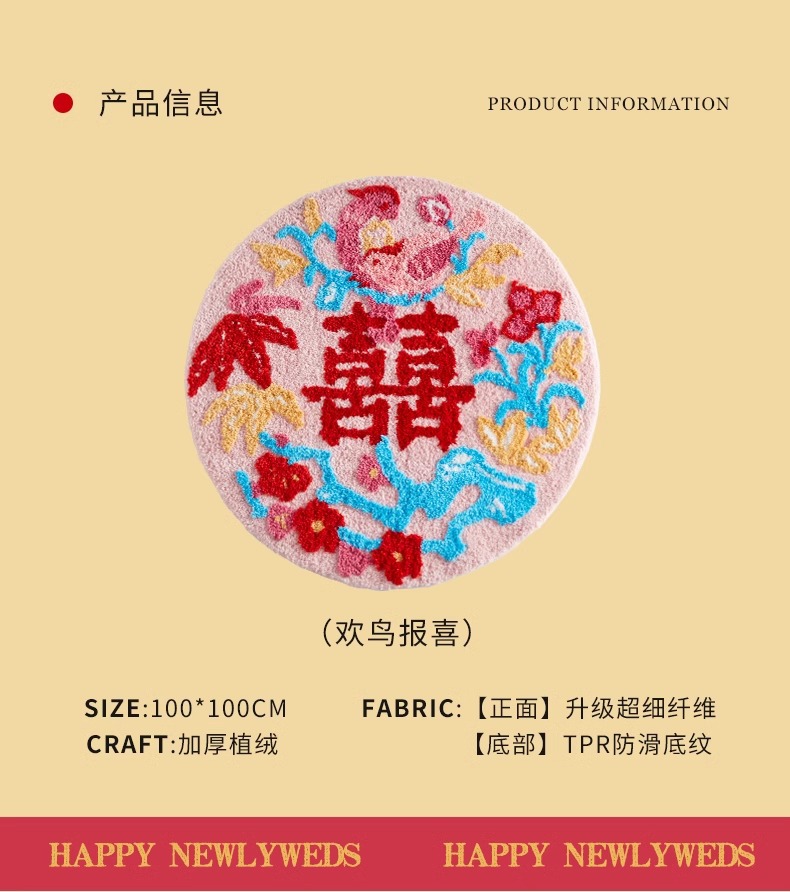 2025 새로운 라운드 웨딩 룸 침실 거실 해피 캐릭터 장식 바닥 매트 새 집 특수 모양의 욕실 카펫스토어 가기