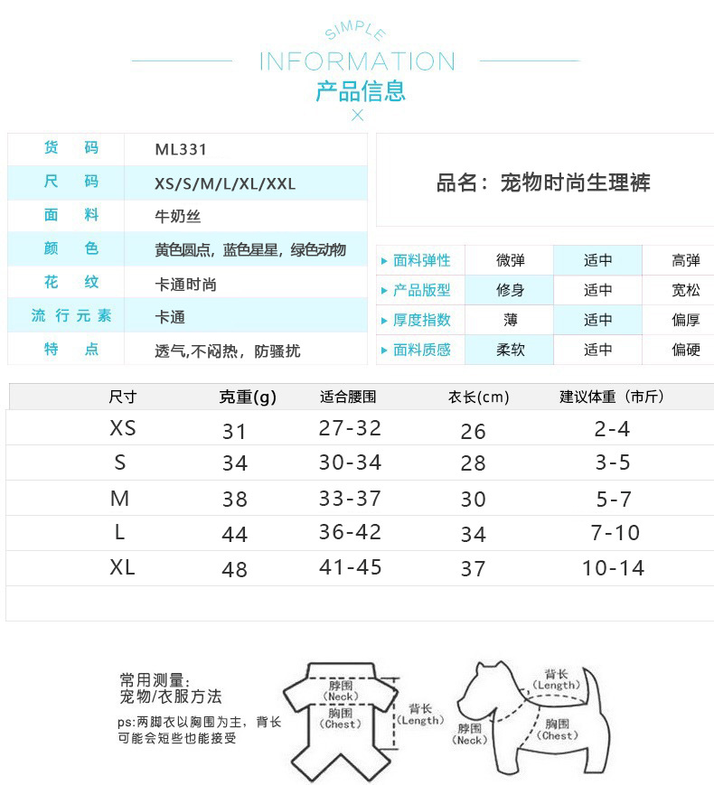 새로운 애완 동물 옷 생리적 바지 개 생리적 바지 테디 아기 세탁 방지 공장 국경 폭발스토어 가기