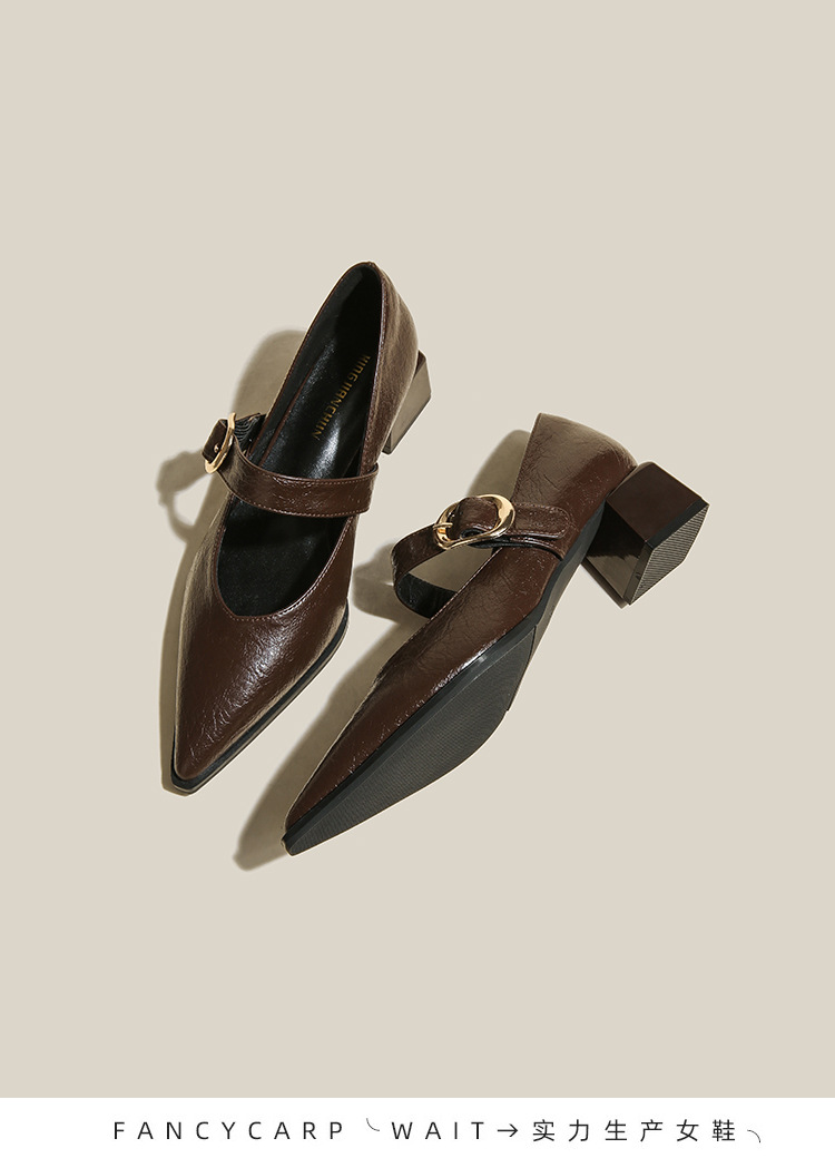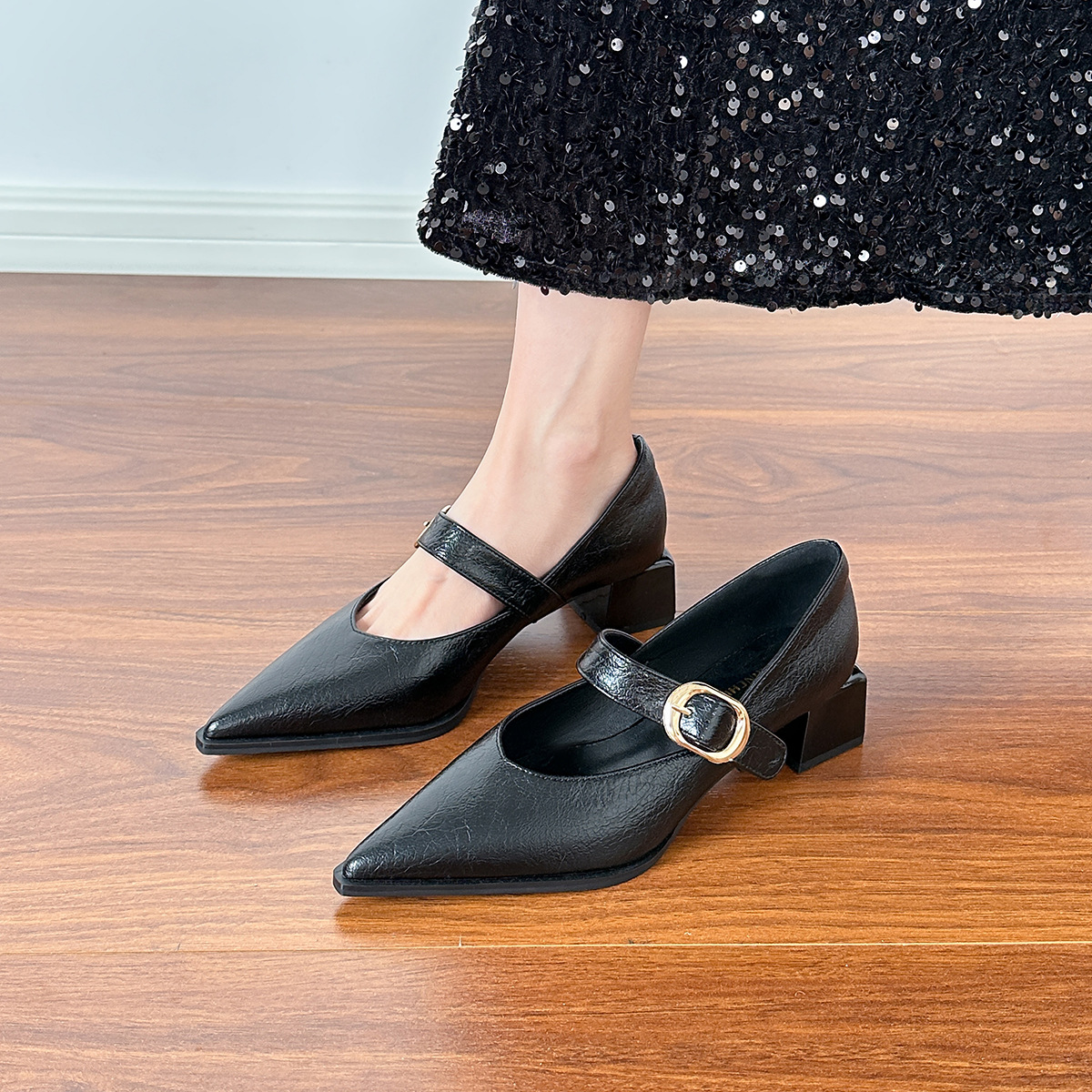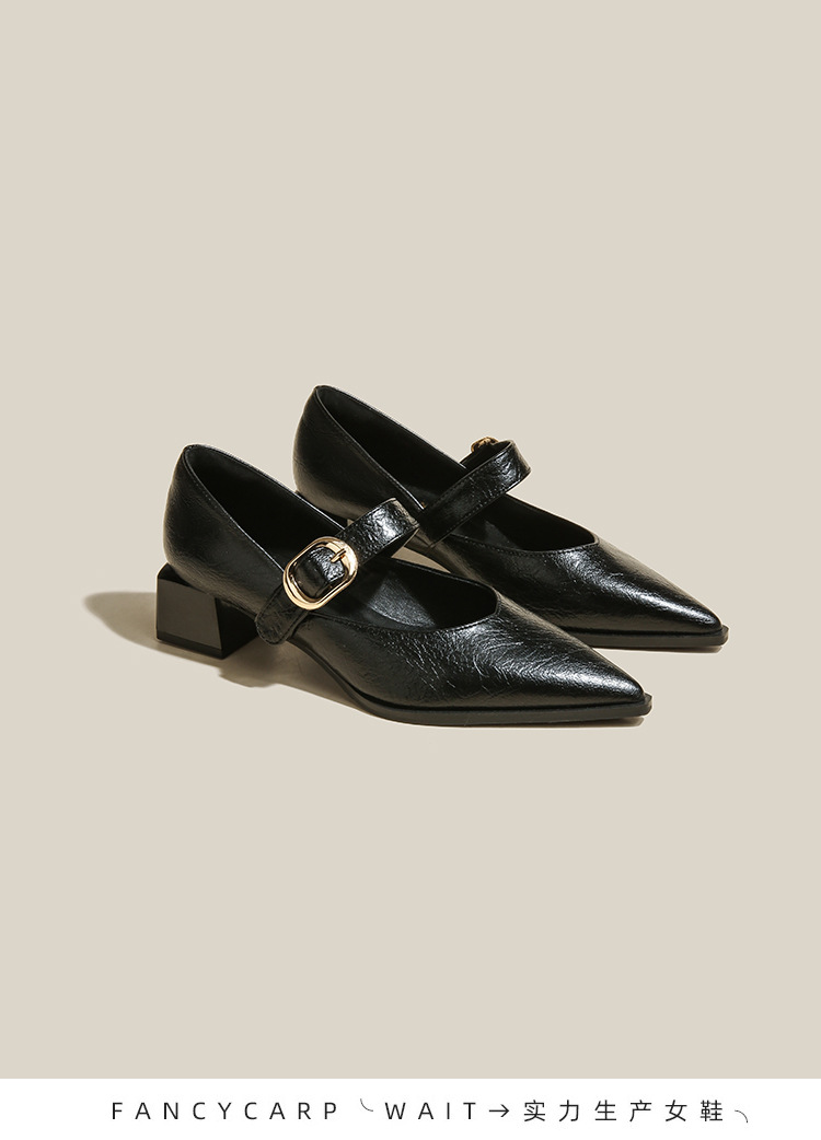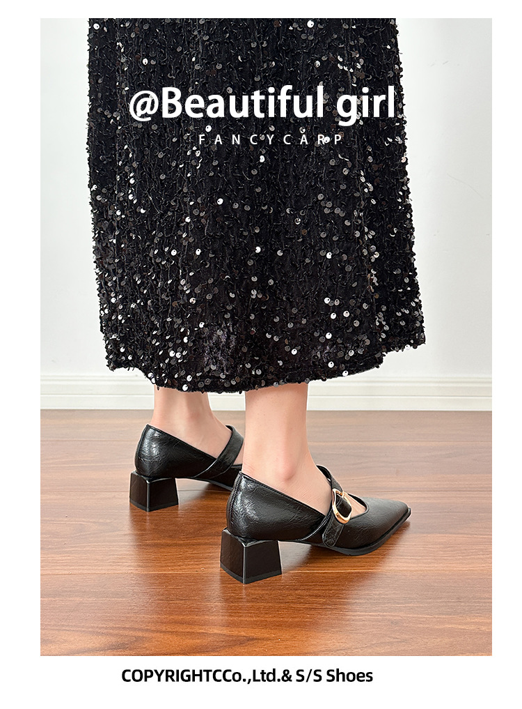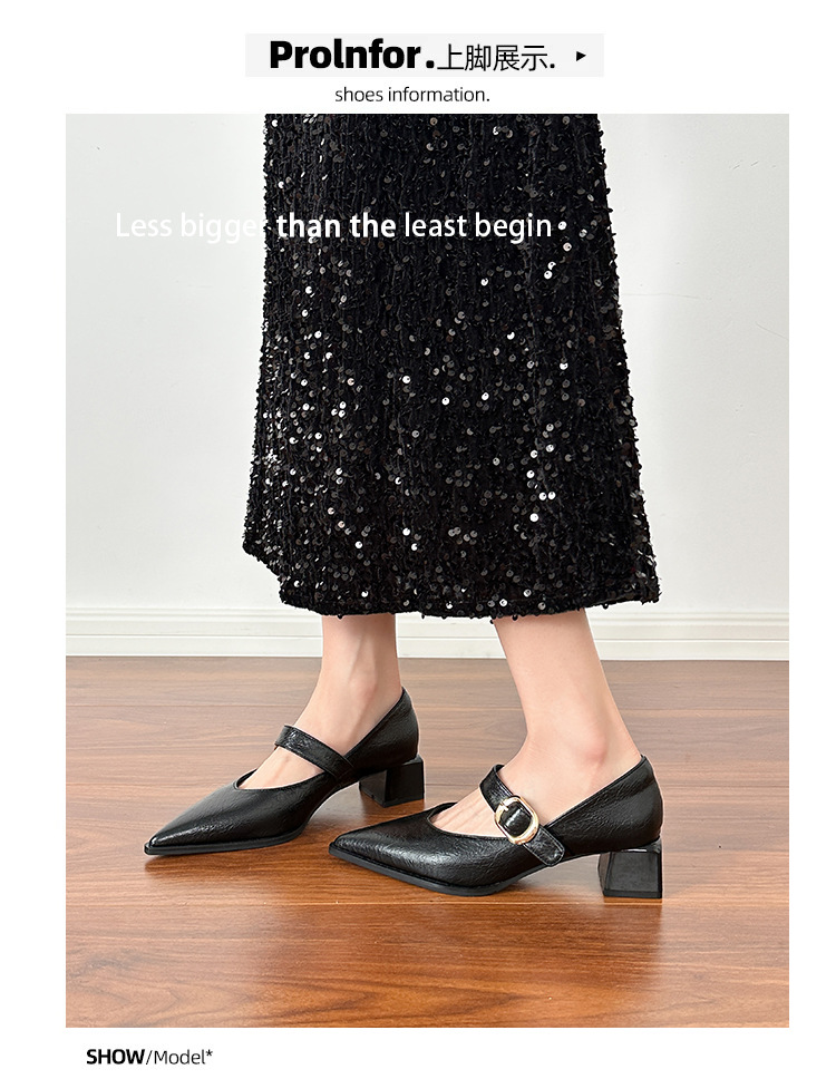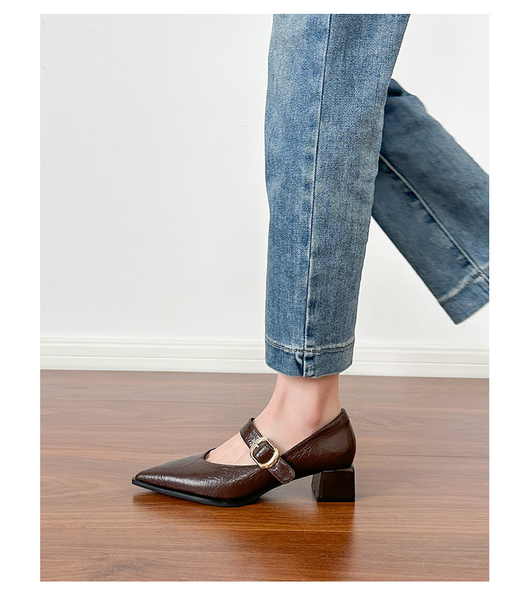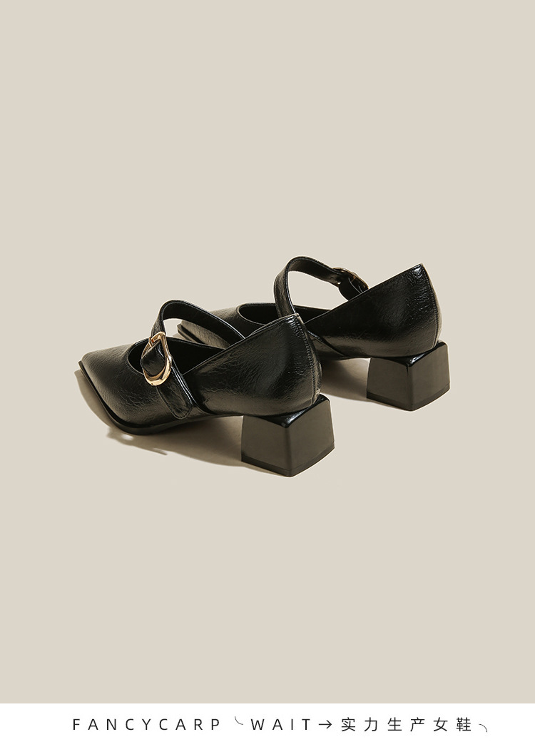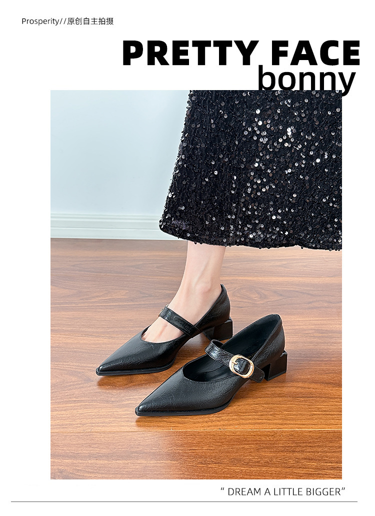재고 통근 영국 스타일 두꺼운 힐 메리 제인 신발 여성의 2025 새로운 봄 부드러운 가죽 빈티지 버클 하이힐스토어 가기