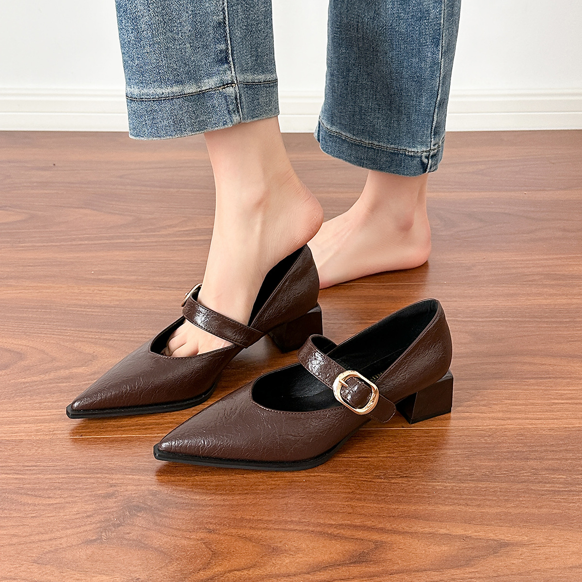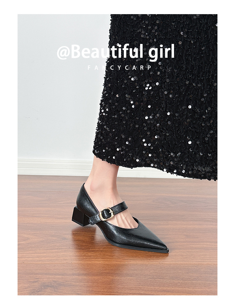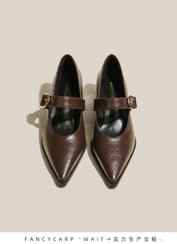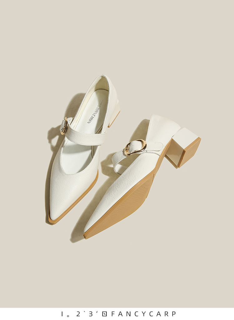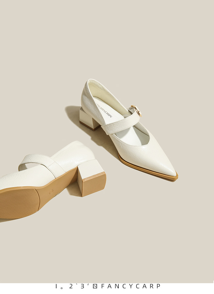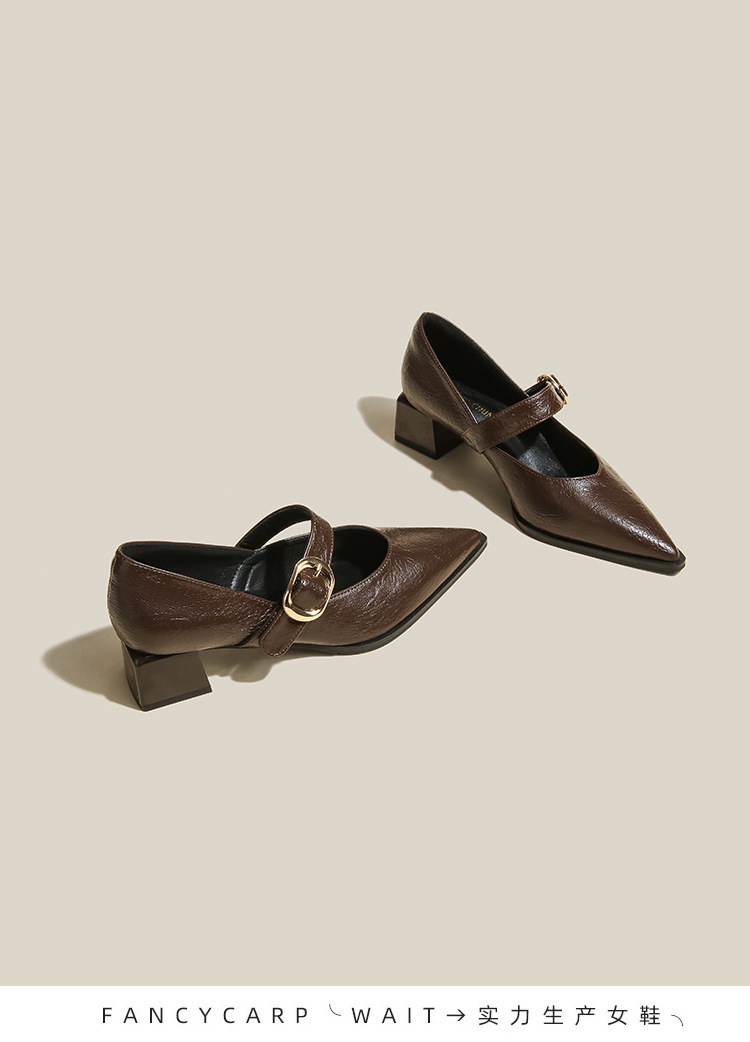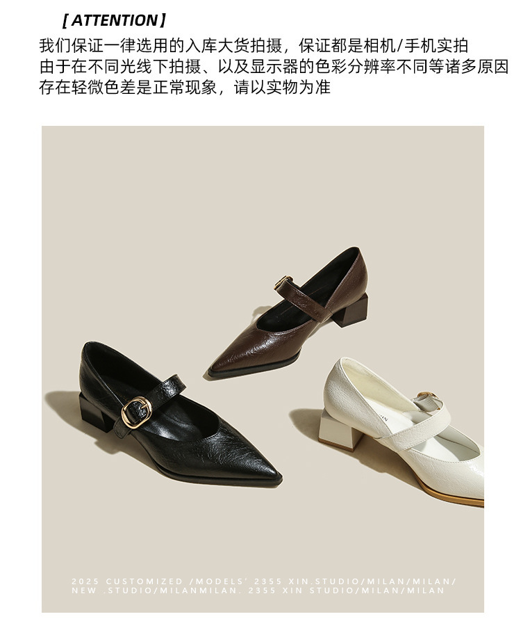 재고 통근 영국 스타일 두꺼운 힐 메리 제인 신발 여성의 2025 새로운 봄 부드러운 가죽 빈티지 버클 하이힐스토어 가기