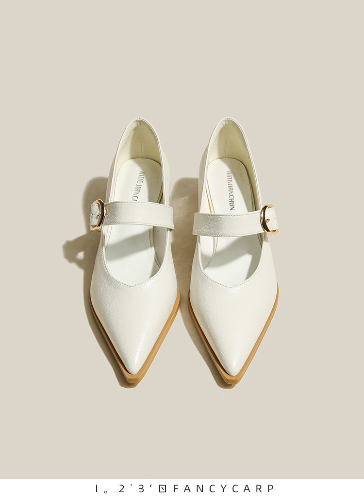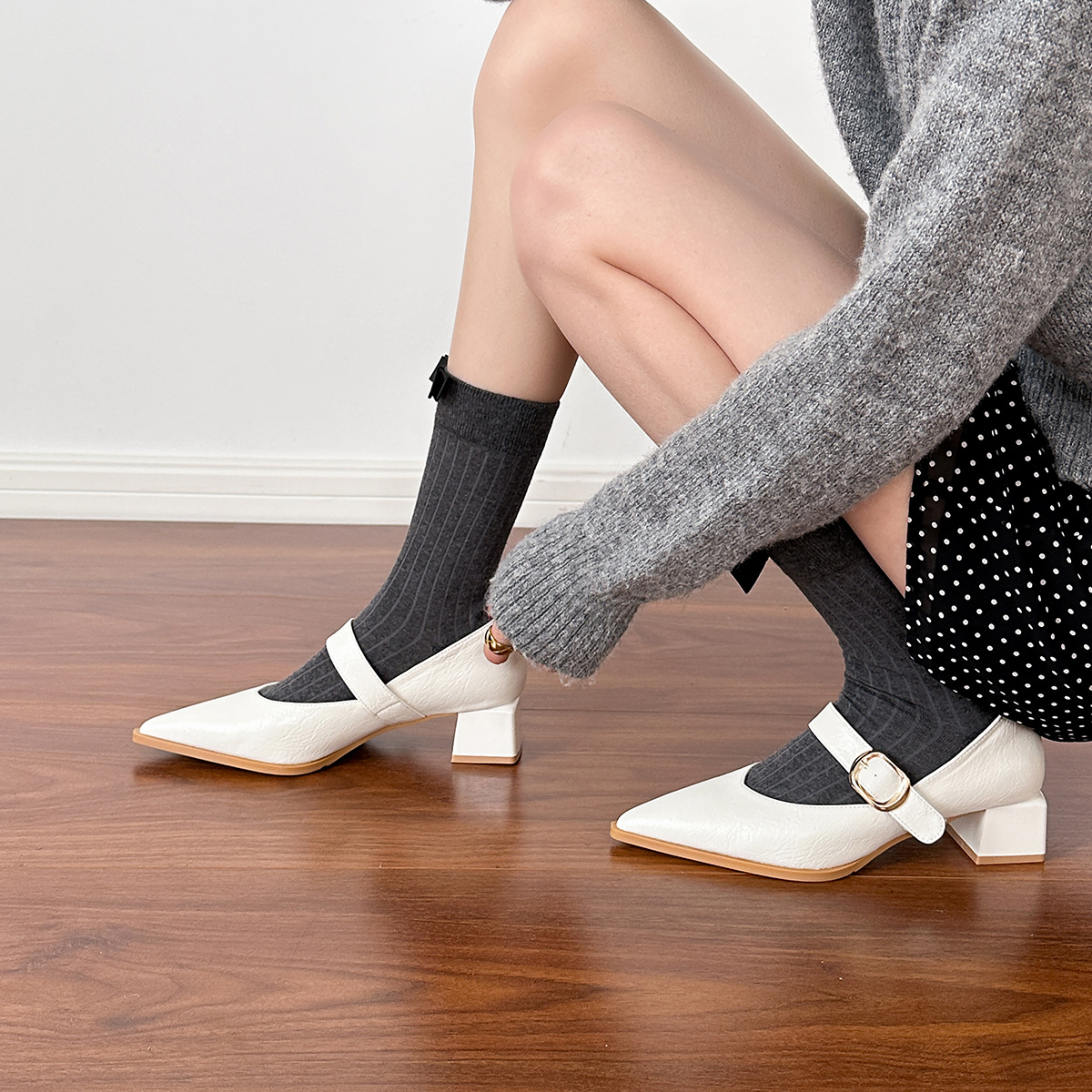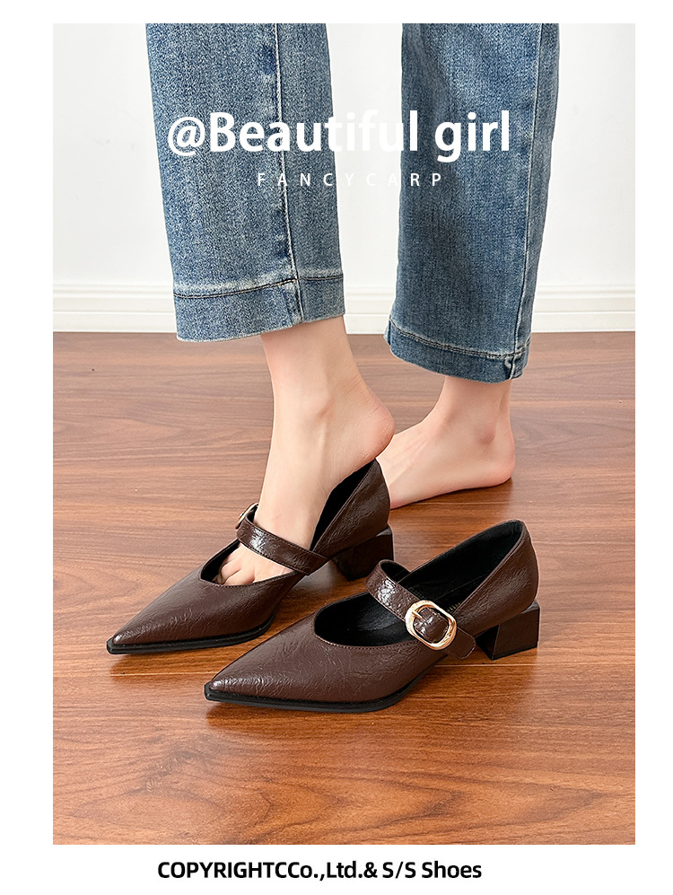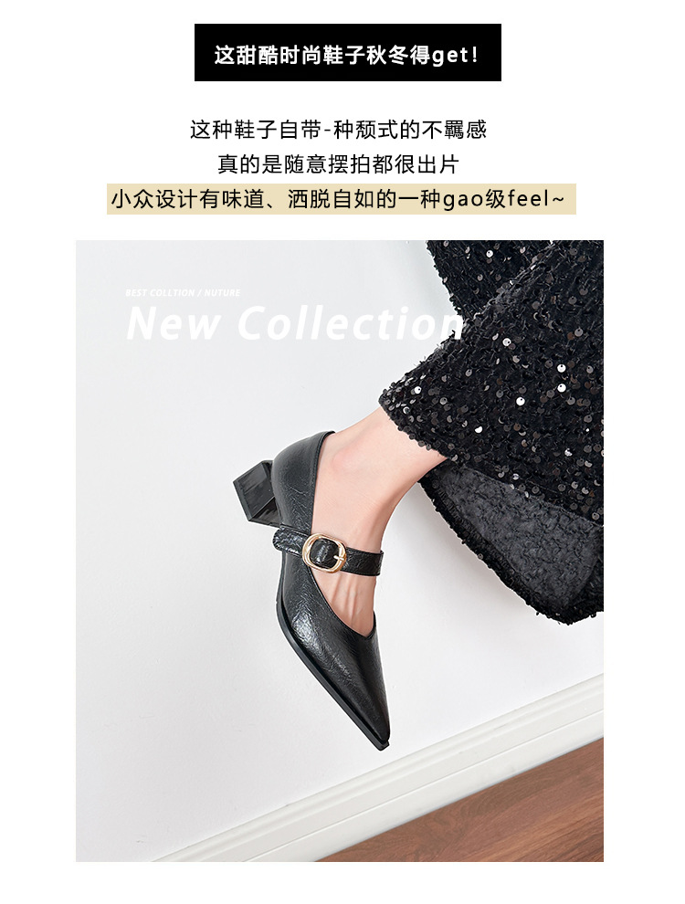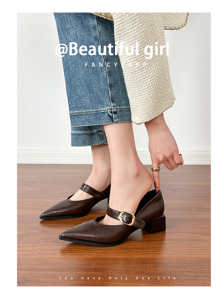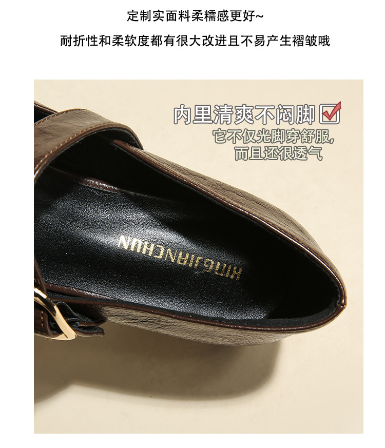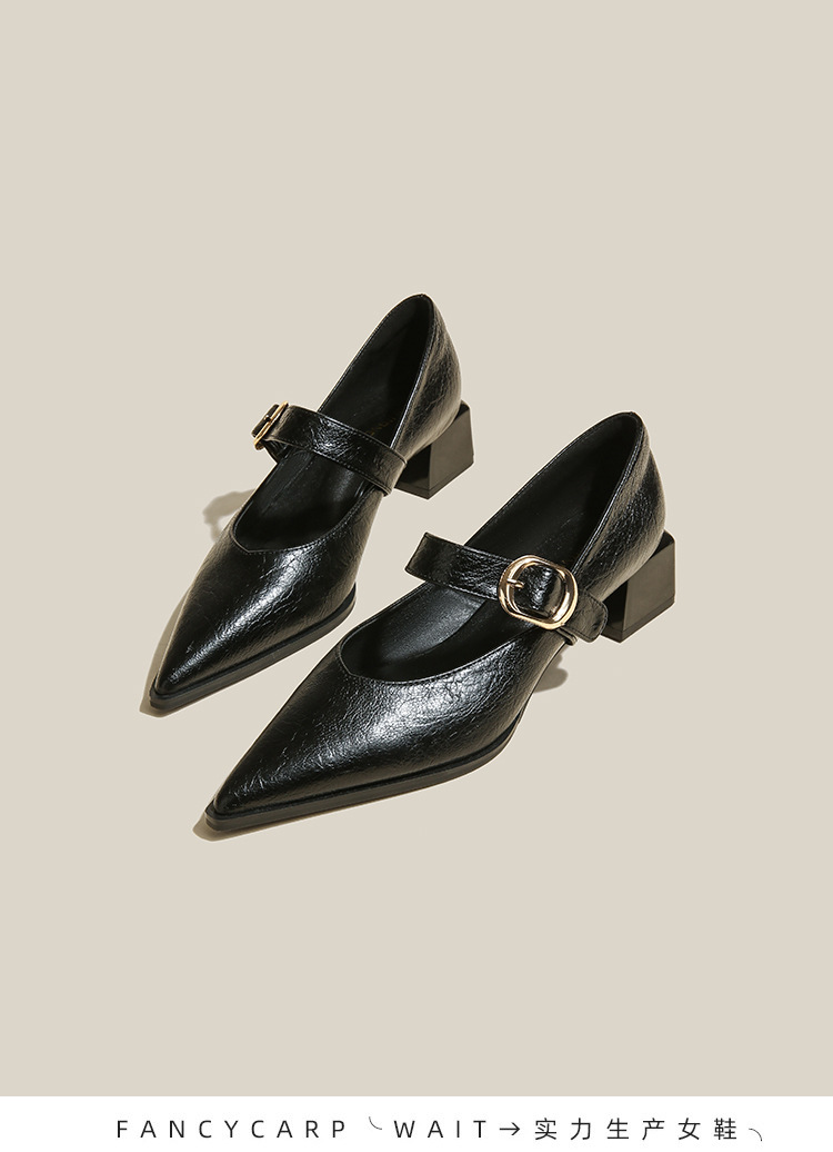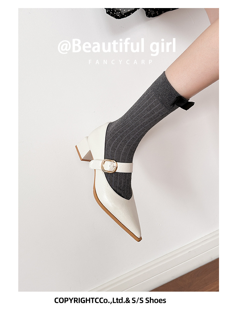 재고 통근 영국 스타일 두꺼운 힐 메리 제인 신발 여성의 2025 새로운 봄 부드러운 가죽 빈티지 버클 하이힐스토어 가기