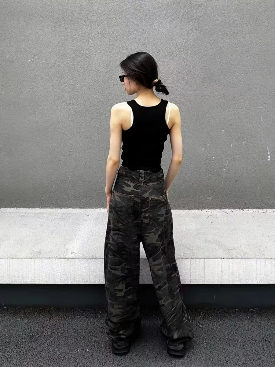 홍콩 스타일 유행 남성 여름 새로운 2025 개인 편지 청바지 힙합 Ins 트렌디 하이 스트리트 트렌디 한 바지