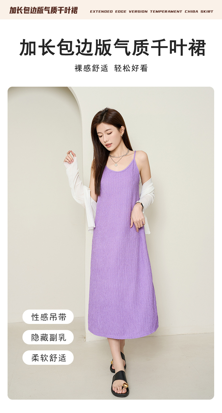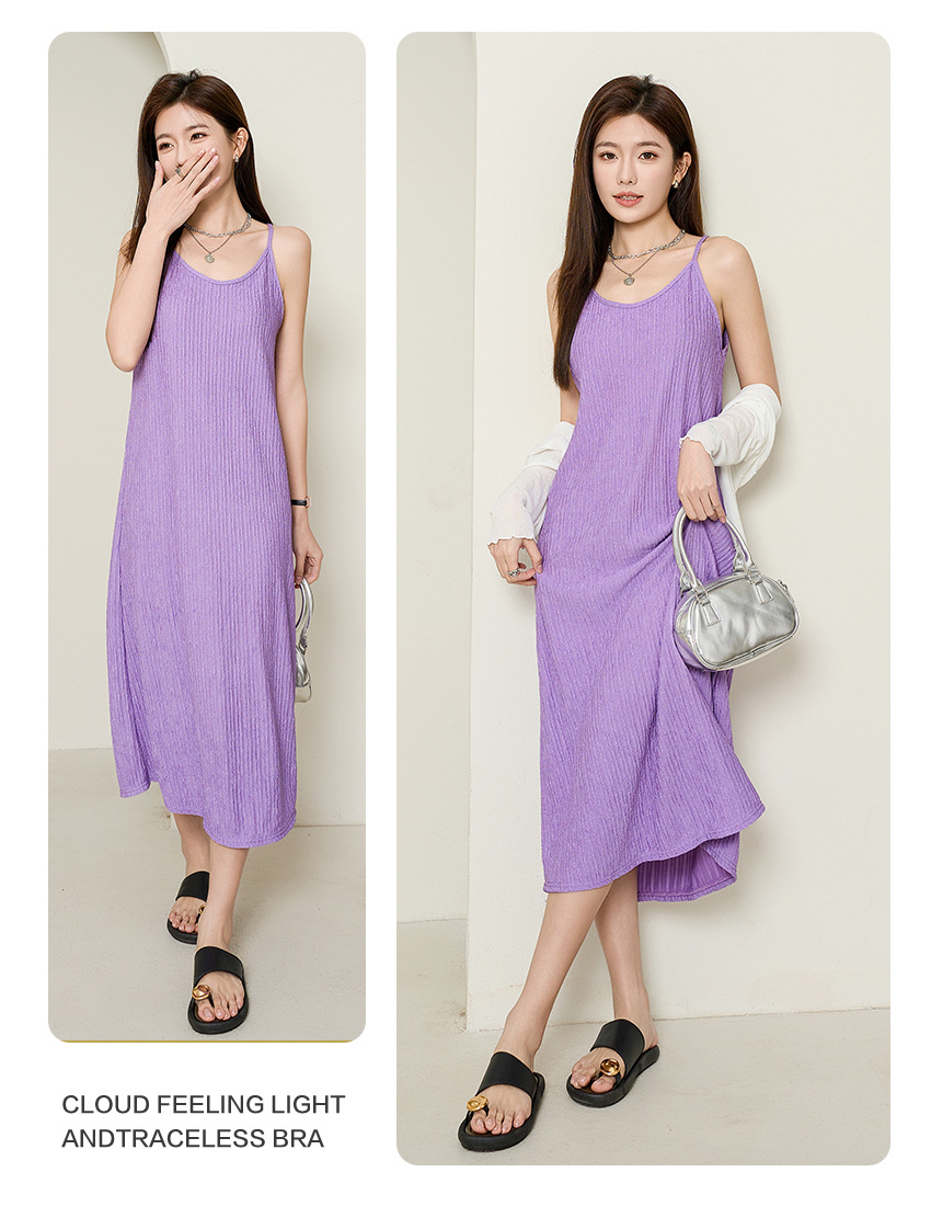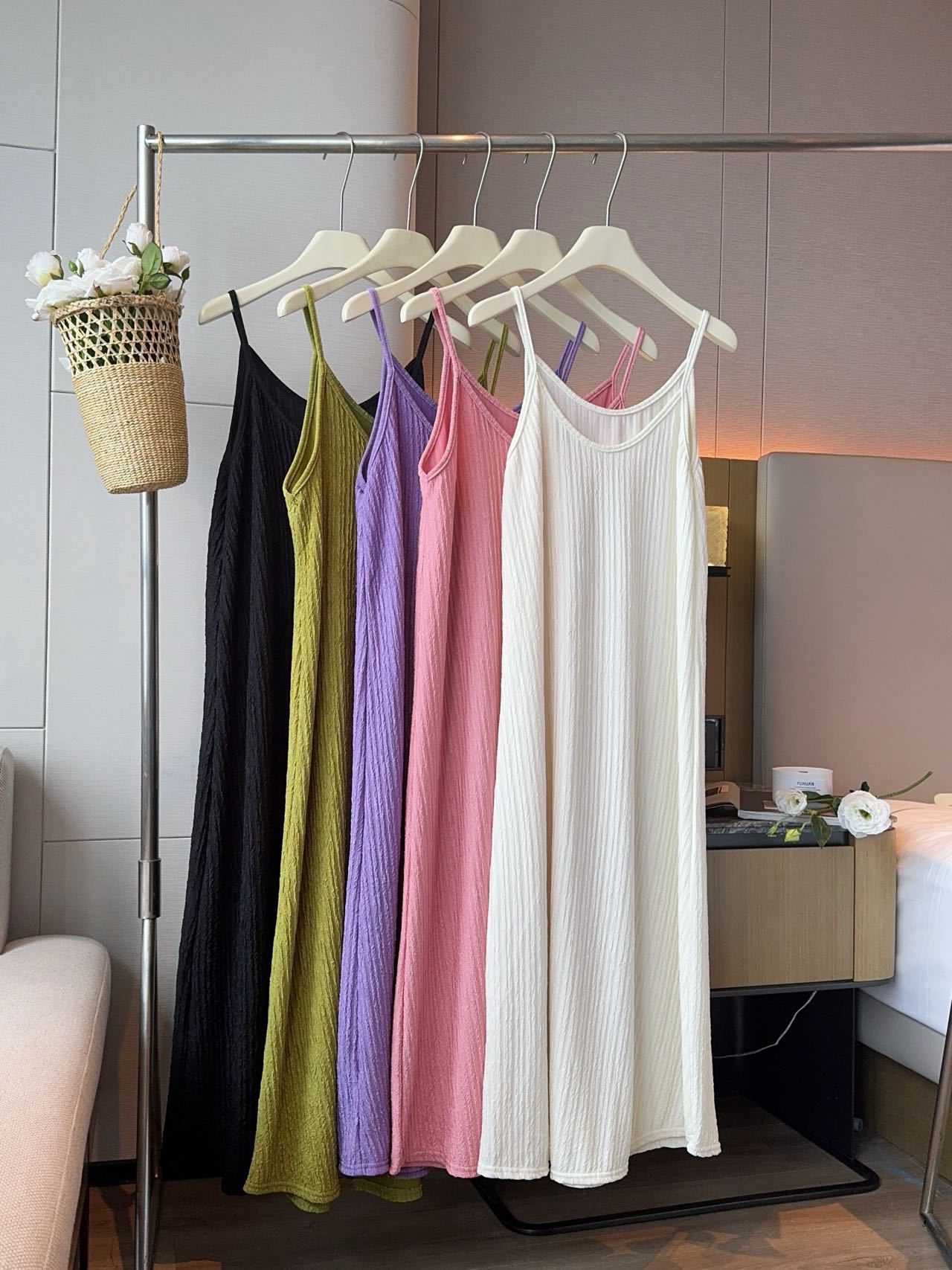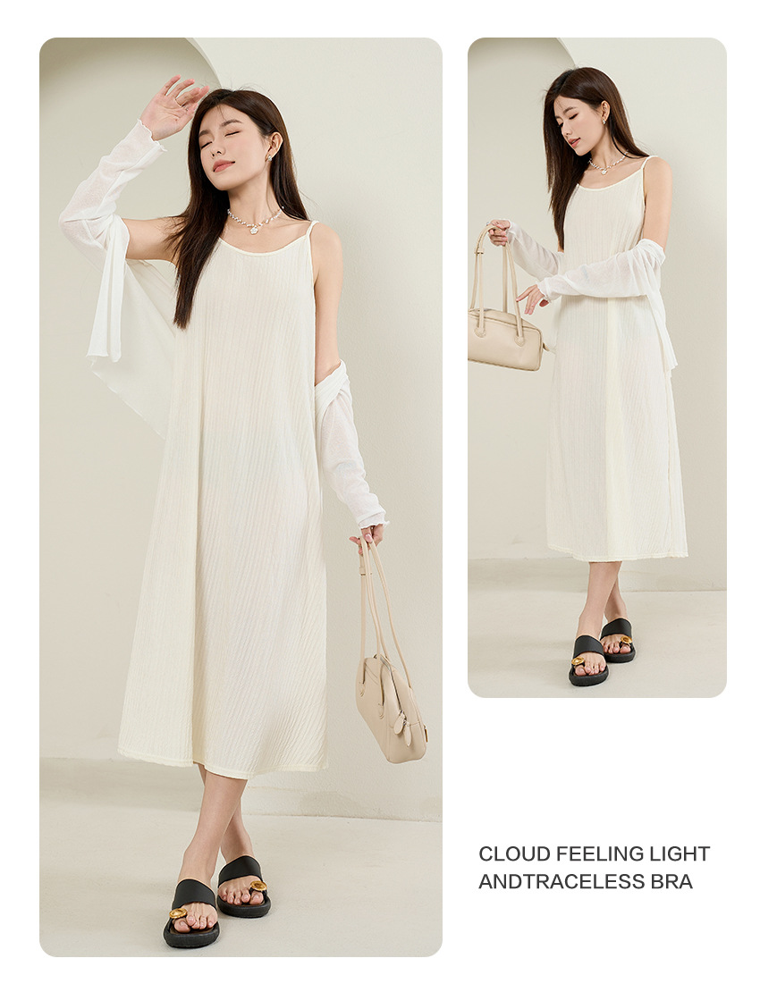 [작은 빨간 승마 책 추천] 2025 봄, 여름, 가을 스트랩 원피스 슬림 주름 짜임새 처짐 스트랩 긴 원피스
