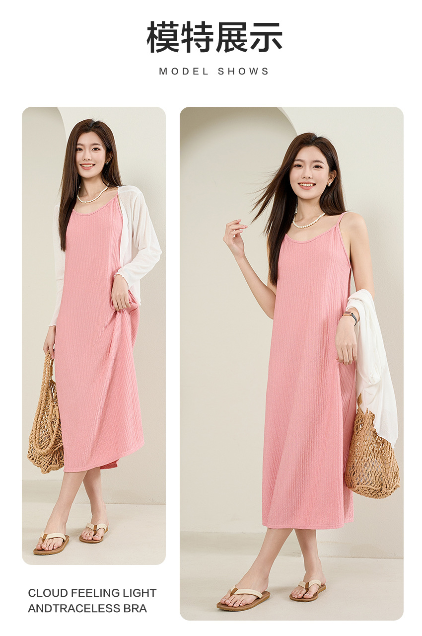 [작은 빨간 승마 책 추천] 2025 봄, 여름, 가을 스트랩 원피스 슬림 주름 짜임새 처짐 스트랩 긴 원피스스토어 가기