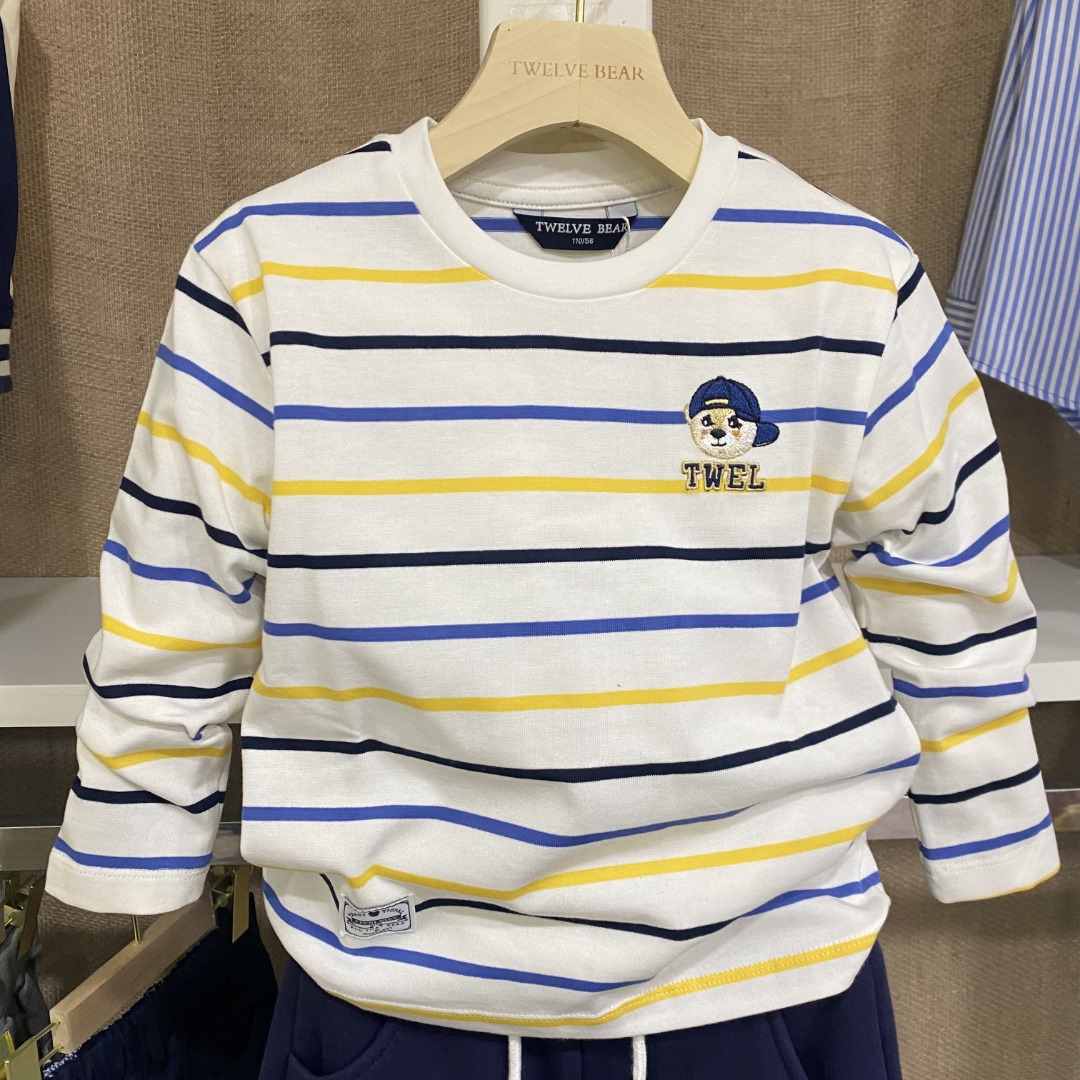 곰 아동복 재고 봄 소년 줄무늬 긴 소매 티셔츠는 머리카락 세대를 지원합니다.스토어 가기