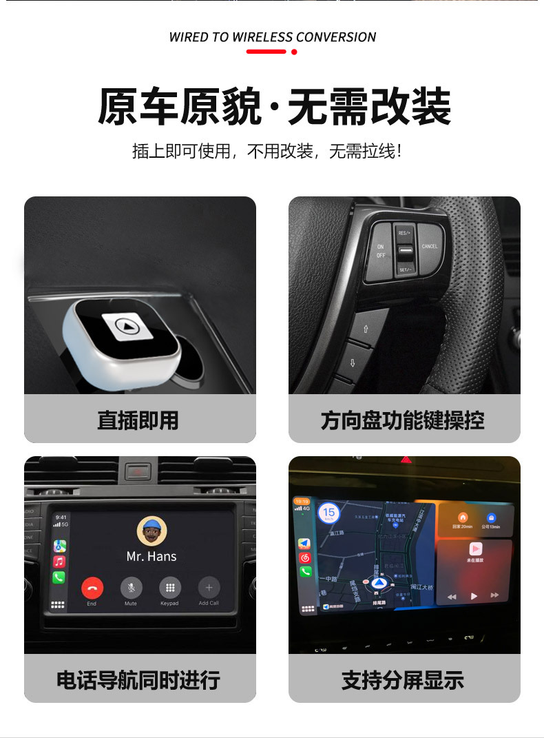 2 대 1 무선 카 플레이 박스 자동차 기계 상호 연결 Apple Android Auto 유선 무선 CarPlay스토어 가기