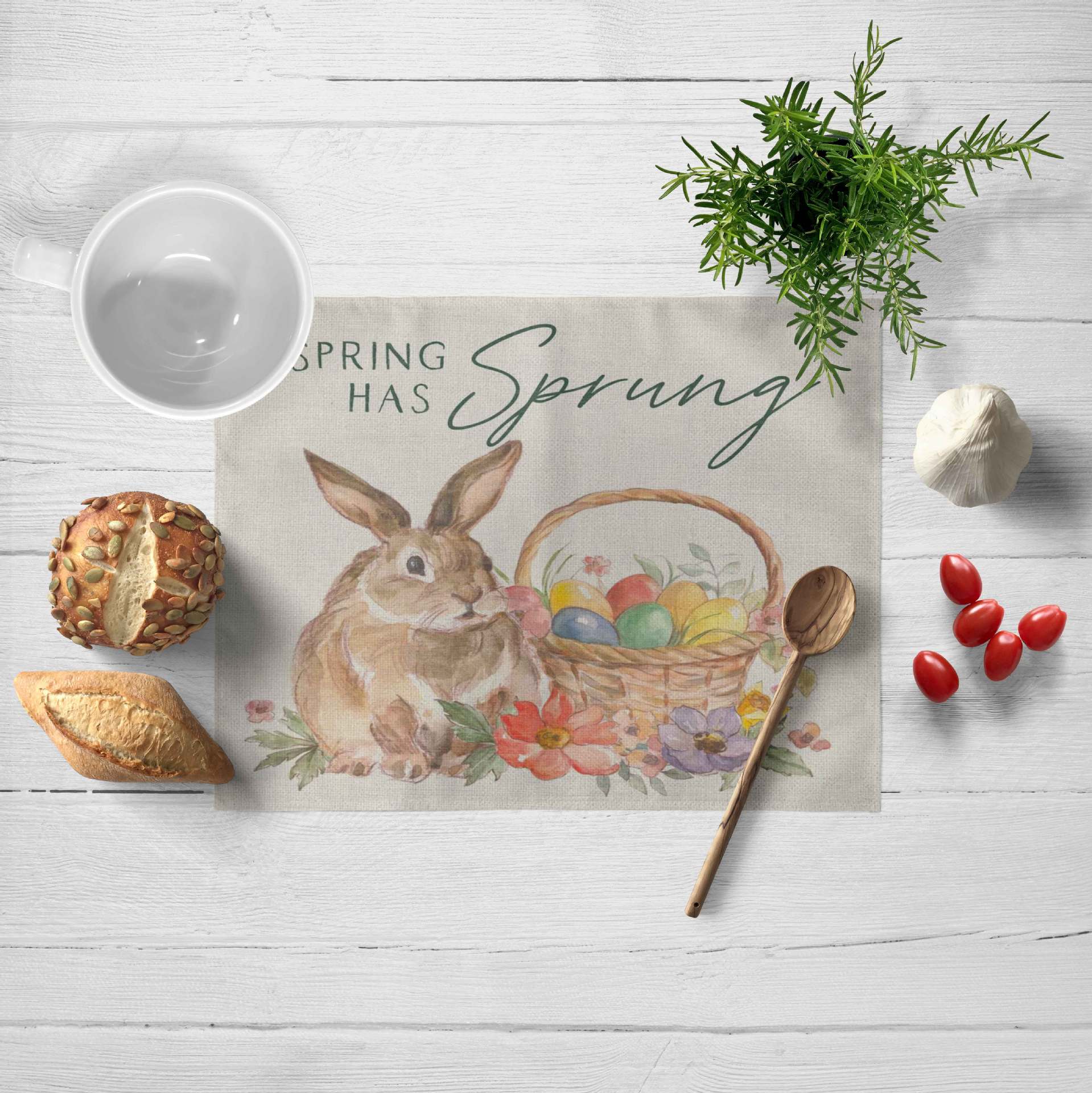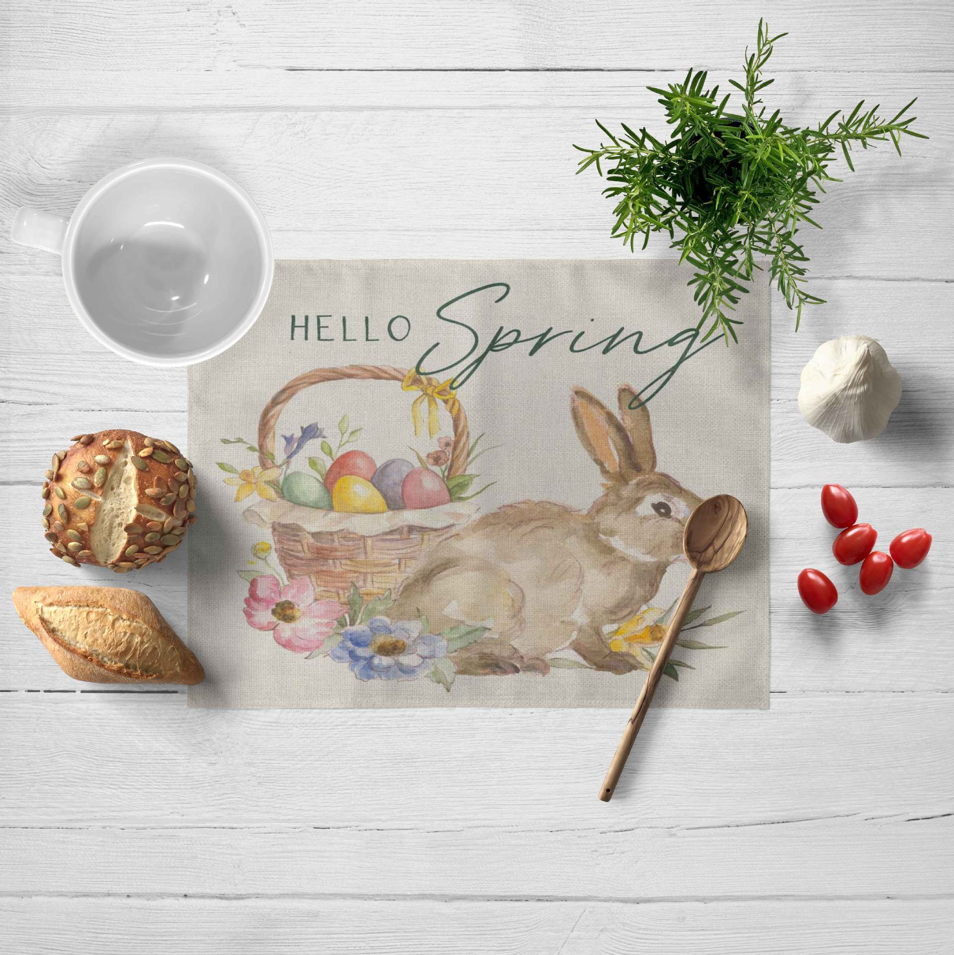 국경 간 부활절 토끼 세트 리넨 플레이스 매트 홈 레스토랑 다이닝 테이블 파티 휴일 장식 플레이스 매트 웨스턴 푸드 플레이스 매트스토어 가기