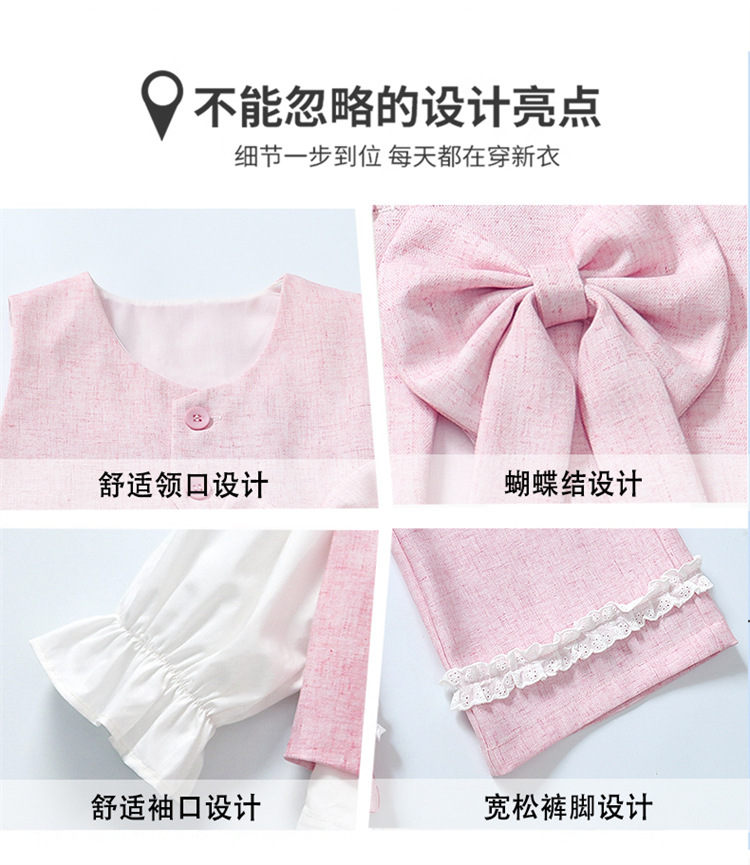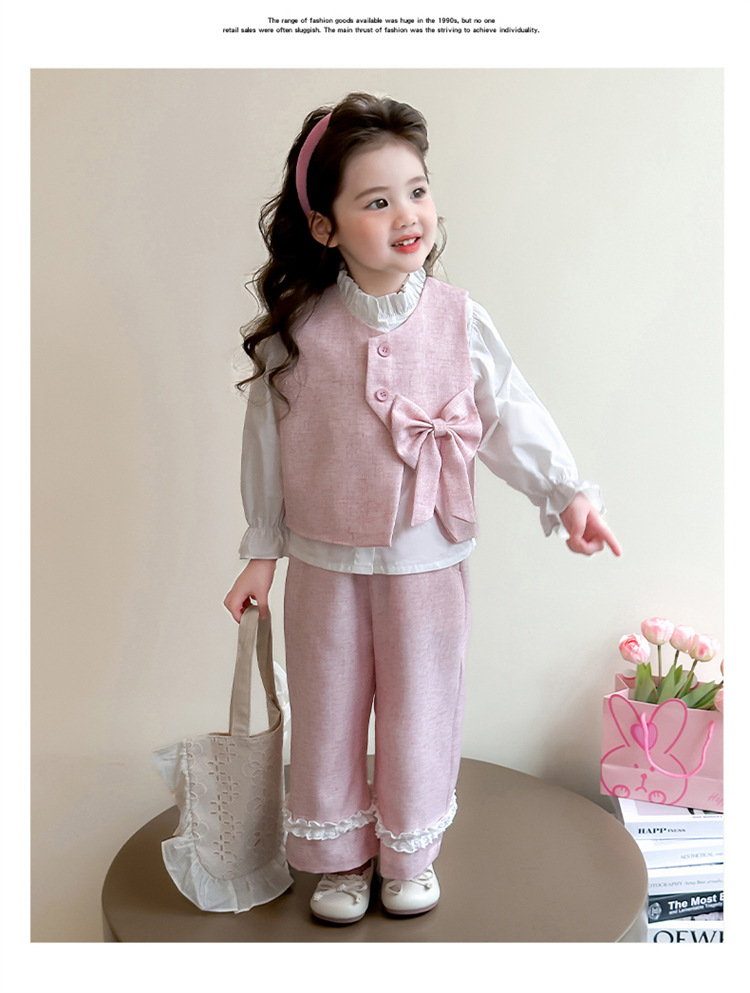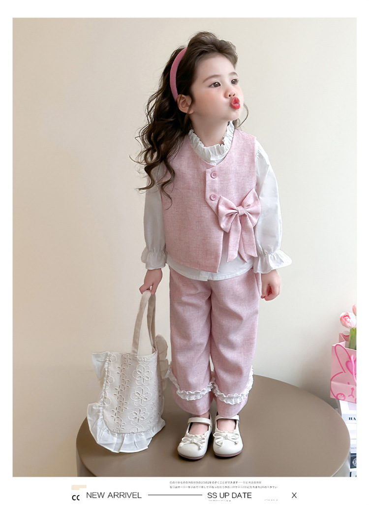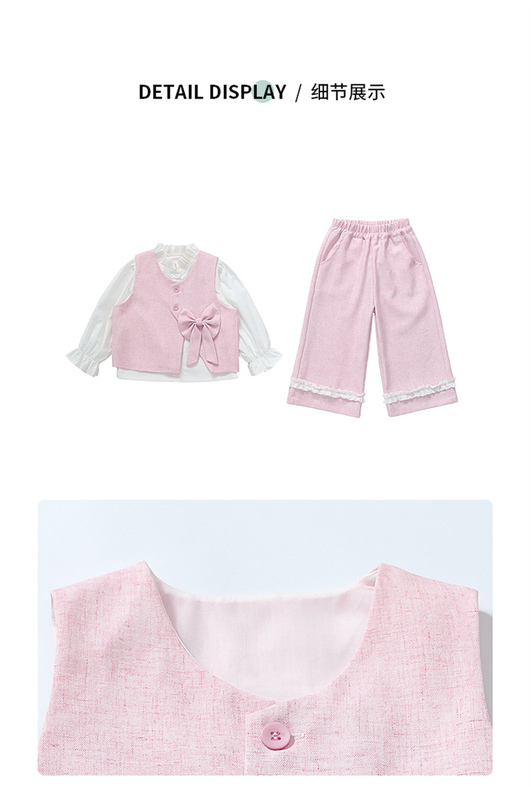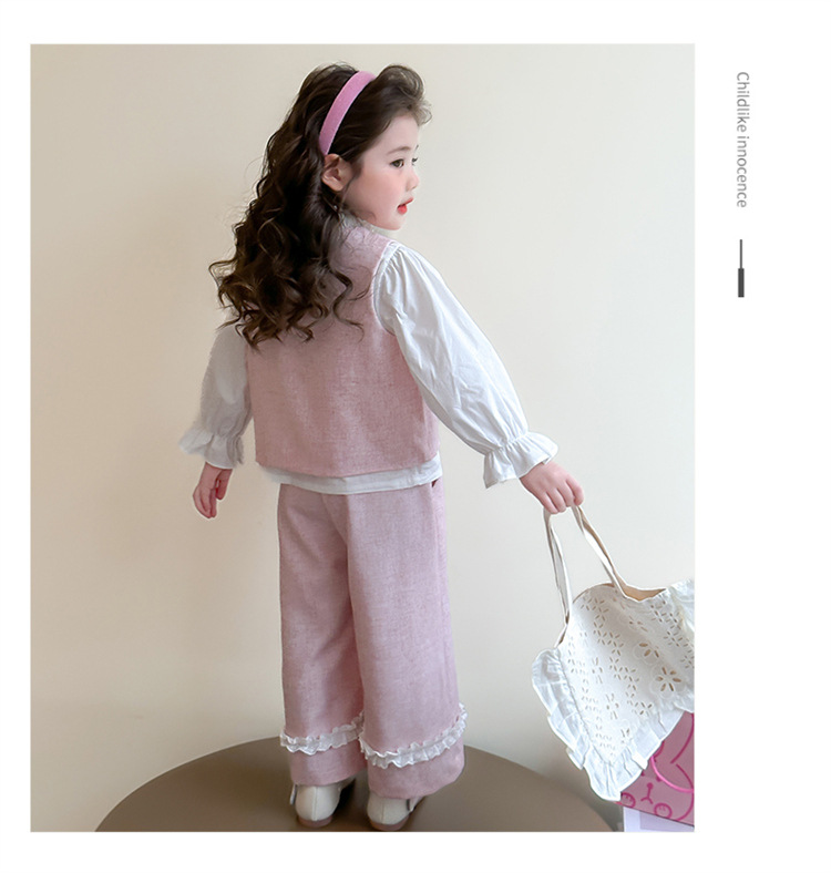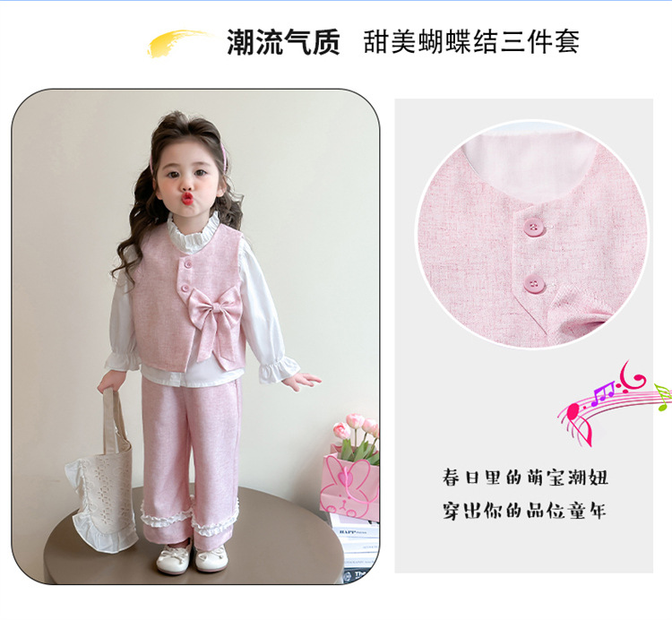 소녀의 봄과 가을 긴 소매 활 3 조각 서양 스타일 2025 새로운 아기 소녀의 봄 달콤한 레이스 바지스토어 가기