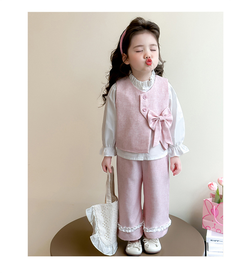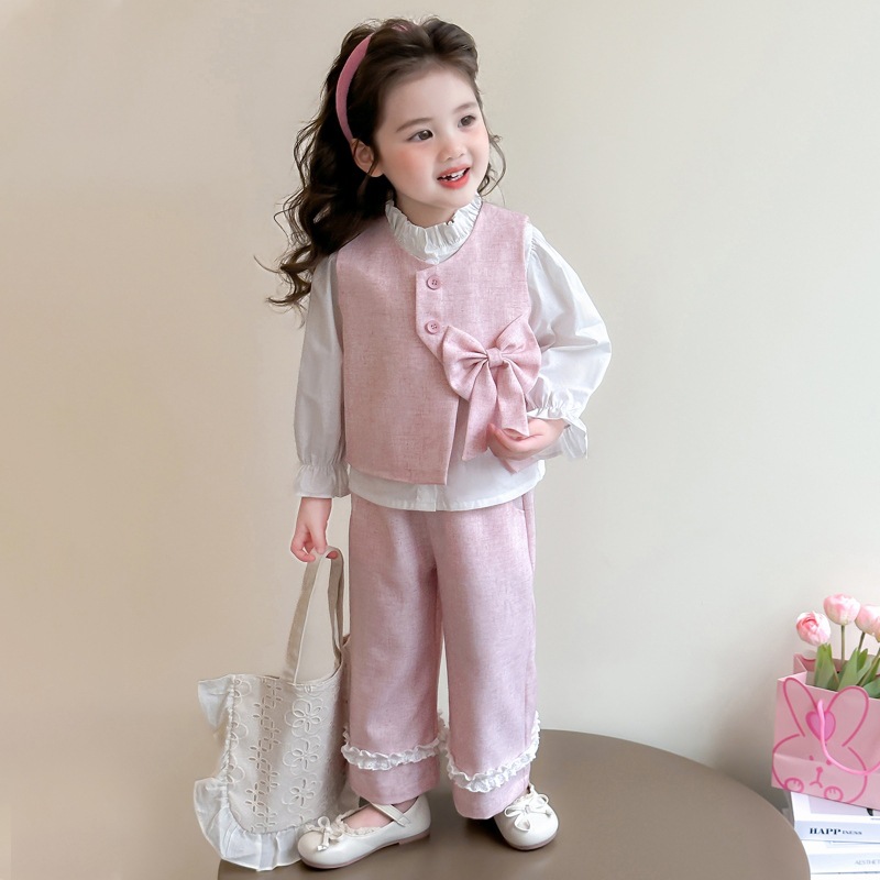 소녀의 봄과 가을 긴 소매 활 3 조각 서양 스타일 2025 새로운 아기 소녀의 봄 달콤한 레이스 바지
